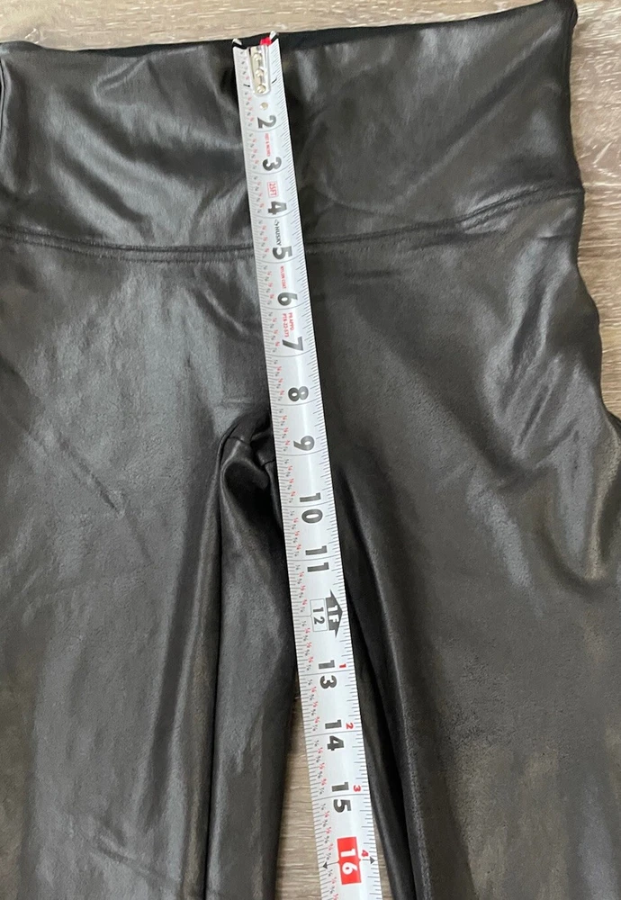 100% authentic SPANX FAUX LEATHER LEGGINGS in a size MEDIUM! ***Color is a Shiny Leatherette Black. gently pre-owned no flaws, measurements in photos Product Description Faux Leather that flatters. This best-selling style features sleek, smoothing faux leather fabric that shapes and lifts and our contoured Power Waistband for core compression. Style No. 2437 Details Sleek and smoothing faux leather fabric shapes and lifts Contoured Power Waistband for core compression Center-seam free for no more camel toe High-waisted design Dress up or down