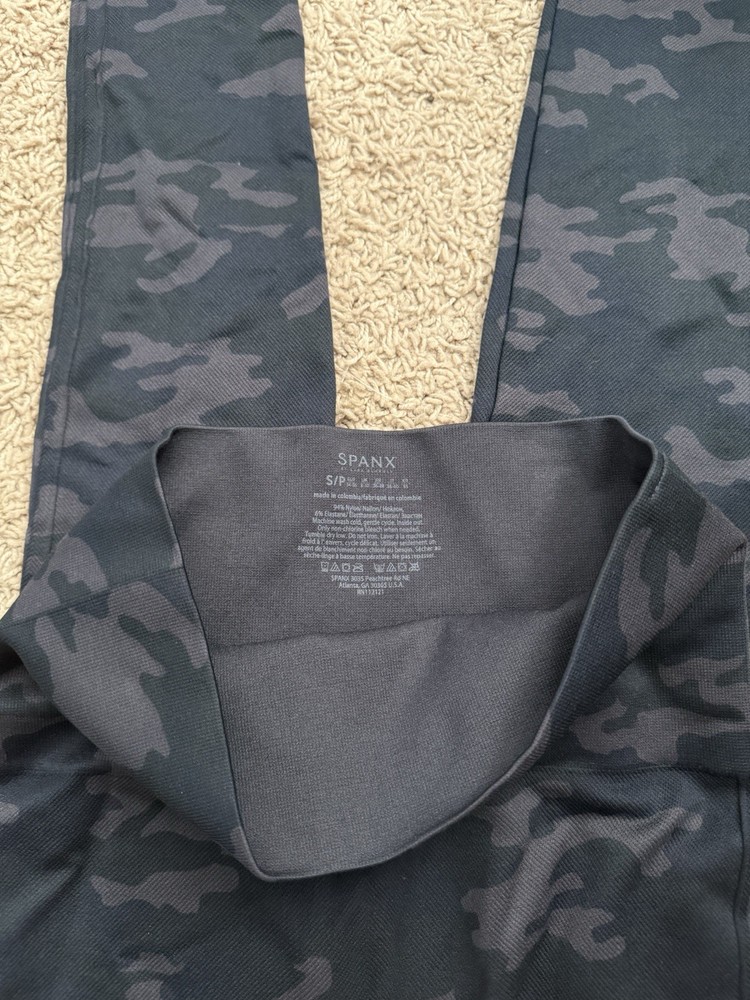 Spanx Seamless Look At Me Now Leggings Pants Women Small Black Camo High Waist