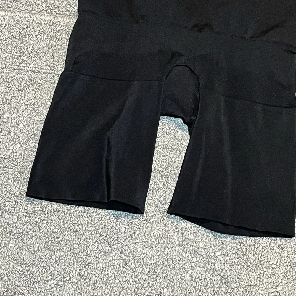 Spanx High Waisted Shaper Shorts Tummy Control Soft Size Large Black See measurements for accurate fit. Waist 12 inches across. Inseam 6 inches Rise 11 inches All measurements are done flat lay