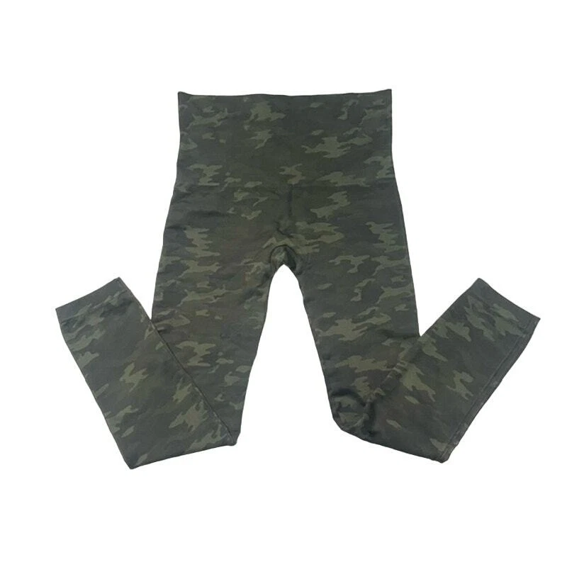 Spanx Look at Me Now Leggings Camo Green Size XL Excellent pre-owned condition, no visible flaws. Center-seam free Flattens stomach Smooths body Green Camo 94% nylon, 6% spandex Hand wash Camo, Tummy Control, Casual, Party Wear, Measurements available upon request. Ships NEXT business day.