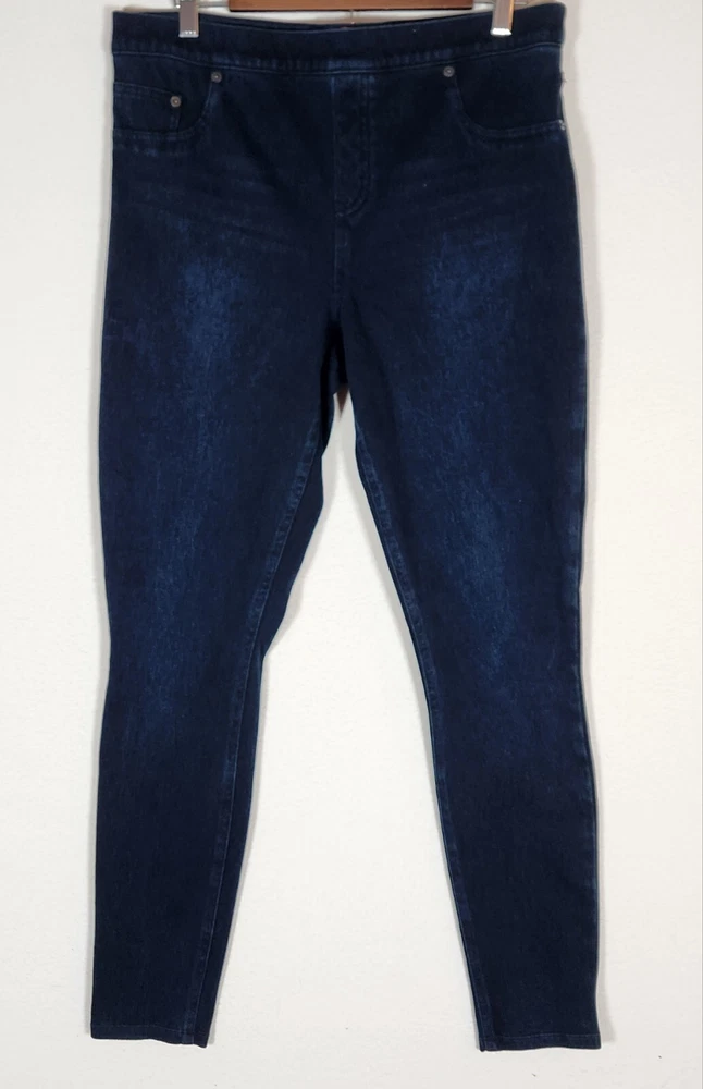 Spanx Women’s Dark Wash Pull On High Rise Denim Skinny Jeans Size XL (33x29”) Please see pictures for measurements. Thanks for looking!