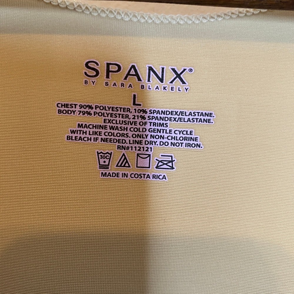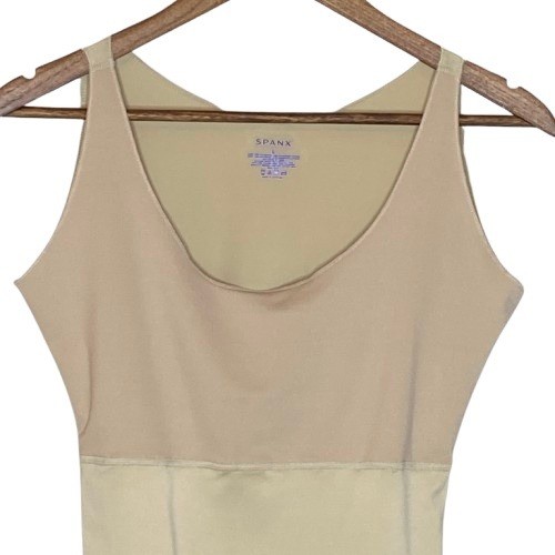 Size: L Personalize: No Style: Shaping Top Garment Care: Machine Washable Pattern: Solid Vintage: No Fabric Type: Blended Fabric Brand: Spanx Features: Slimming, Lightweight, Moisture Wicking, Stretch, Tagless Color: Beige Underwire Type: Wireless Country of Origin: Costa Rica Material: Polyester, Spandex Type: Shapewear Size Type: Regular Seller Notes: “Very Good Pre-Owned Condition (see pics for details). No holes, rips or stains.” Department: Women Compression Area: Waist, Abdomen, Body