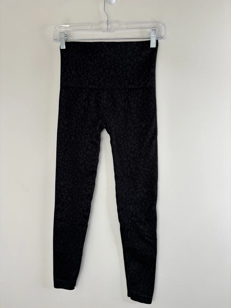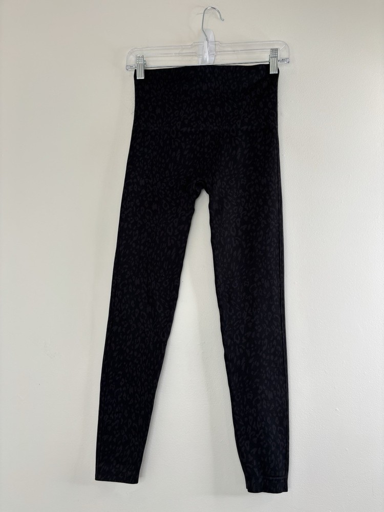 Spanx medium black print leggings elastic waist good condition , 24x24