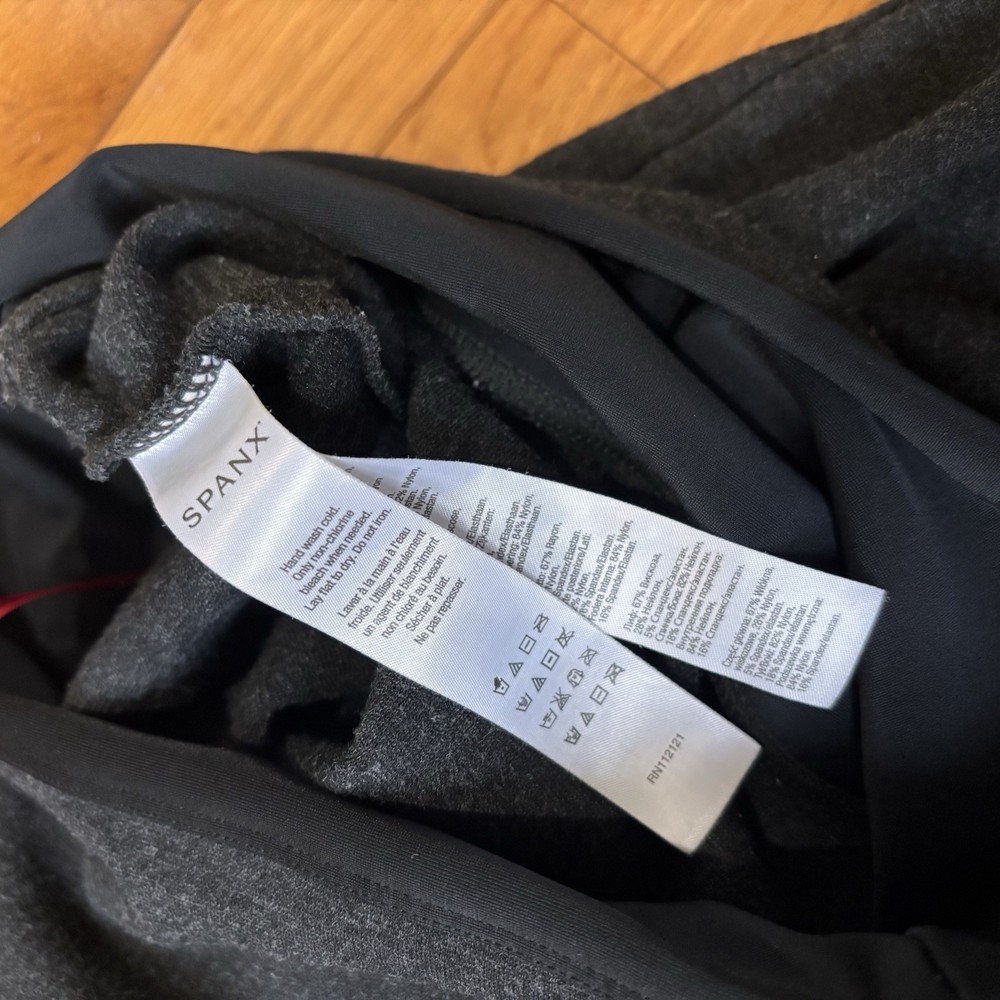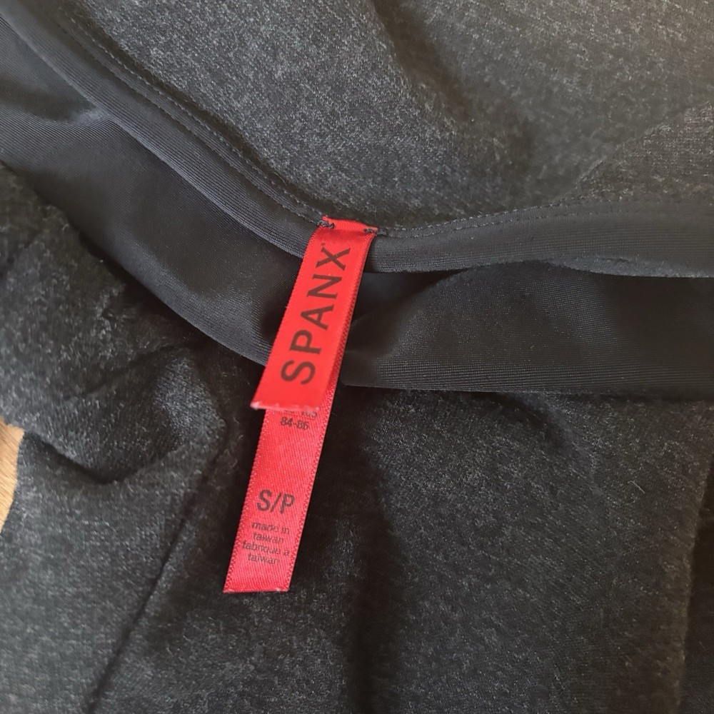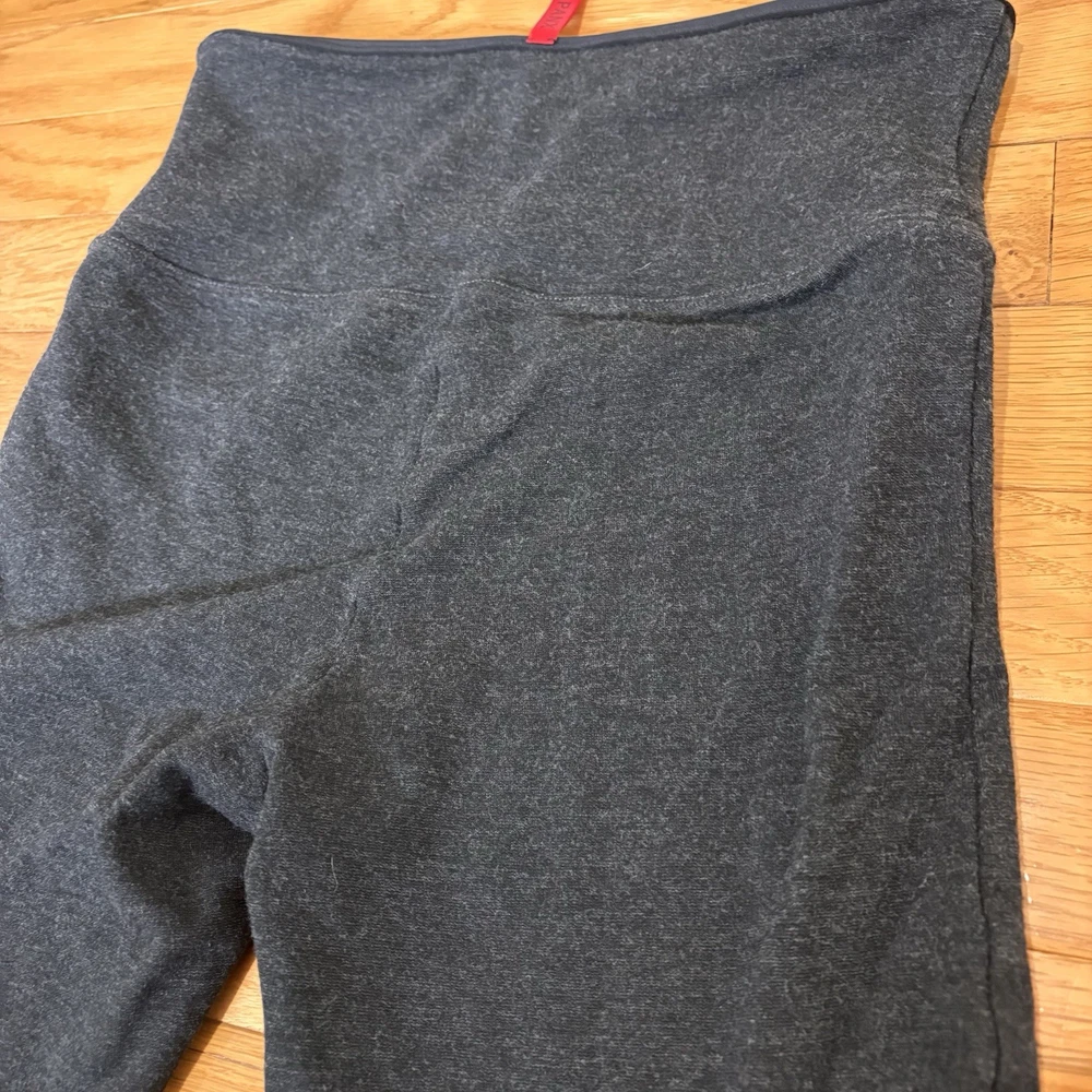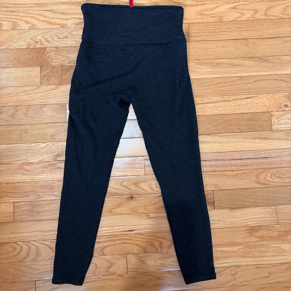 Dark heathered gray high-rise compression leggings from Spanx in a women's size small. PLEASE NOTE FLAW: Worn spot in crotch panel as seen in photos; thin but not see-through. Otherwise very good condition. Measurements: Waist (flat lay) 13”, waistband to crotch 10”, inseam 24.5” Next day shipping, great packaging, open to offers!
