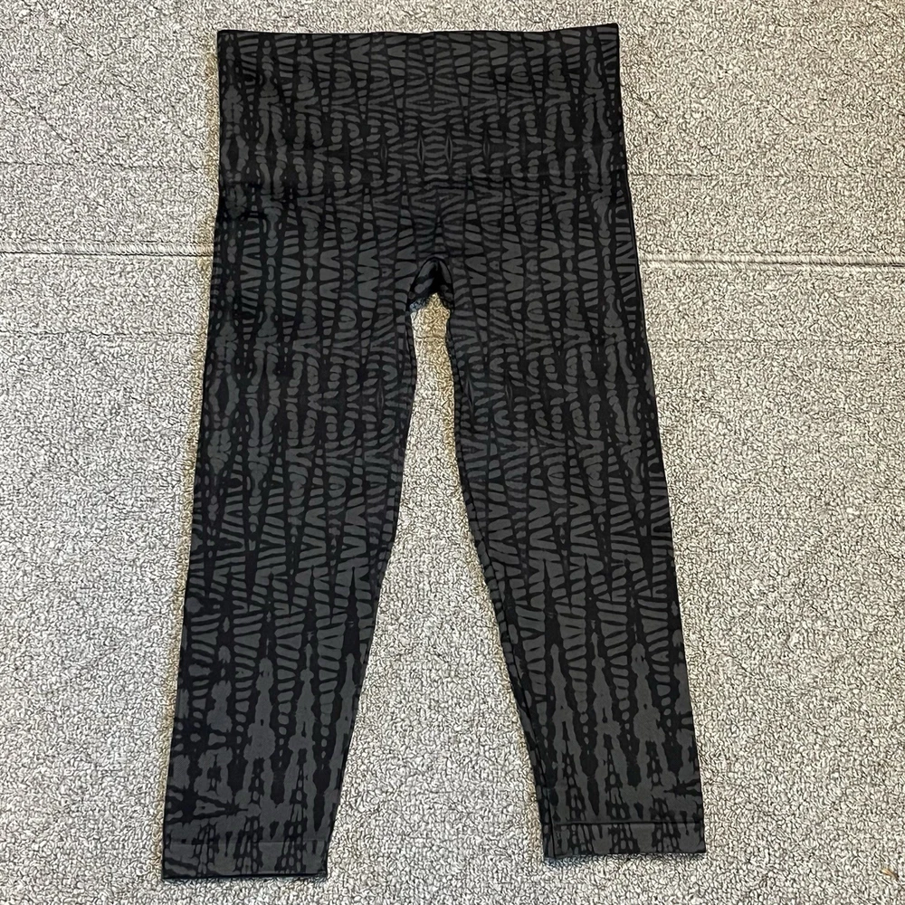 Spanx Leggings Womens Size XL Black Geometric Cropped Shaping Athletic Yoga Gym See measurements for accurate fit Inseam 21 inches Rise 9 inches Waist 13.5 inches across Measurements are done flat lay