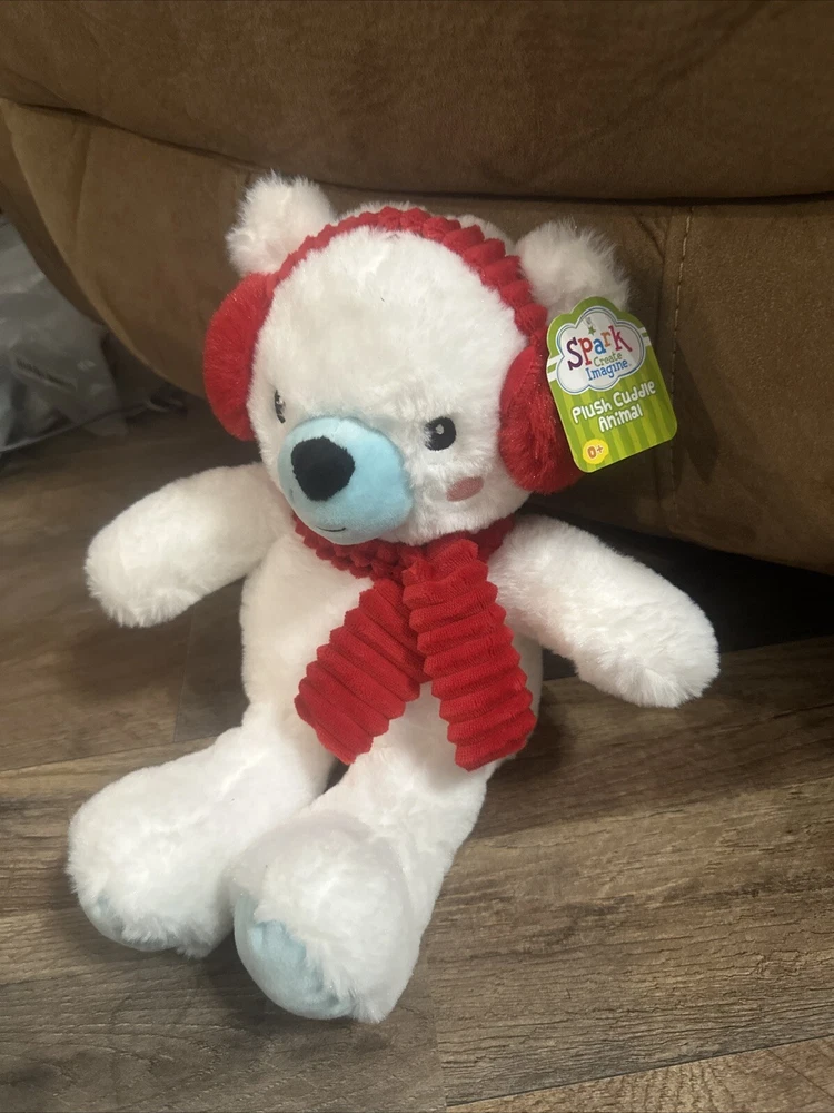 This adorable Spark Create Imagine Polar Bear Plush Stuffed Animal is perfect for any child or adult who loves cute and cuddly toys. With its soft gray color and small size (6-14 in), this polar bear is sure to bring a smile to anyone's face. It is recommended for ages 0+ and is made in China with high quality materials. In addition to its cute appearance, this polar bear also has a fun feature - it rattles and crinkles, making it perfect for sensory stimulation. This toy is great for children who love to play with small toys or for adults who enjoy collecting cute and unique items. Don't miss out on the chance to add this Spark Polar Bear Plush Stuffed Animal to your collection!