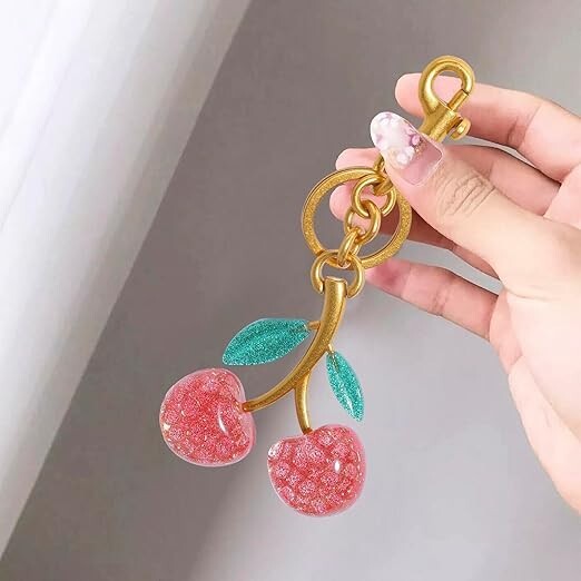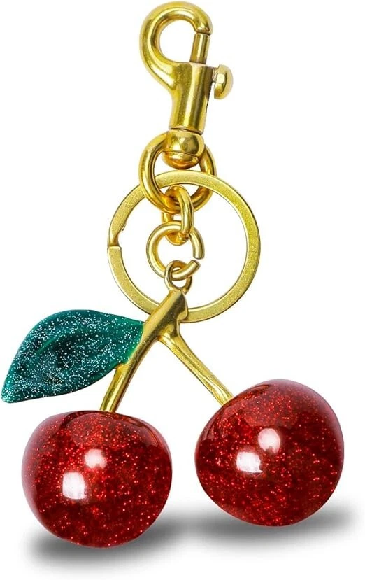 This adorable cherry charm adds the perfect pop of sparkle to any bag or keyring! The glittery resin cherries look so vibrant, and the metal ring makes it easy to attach. I love the playful design—it instantly brightens up my everyday accessories. Super cute and well-made!