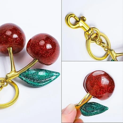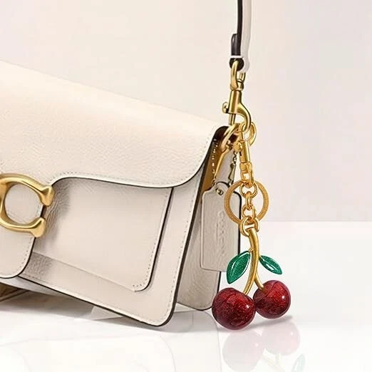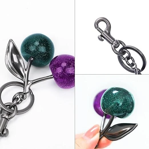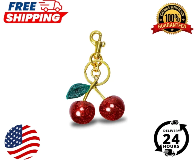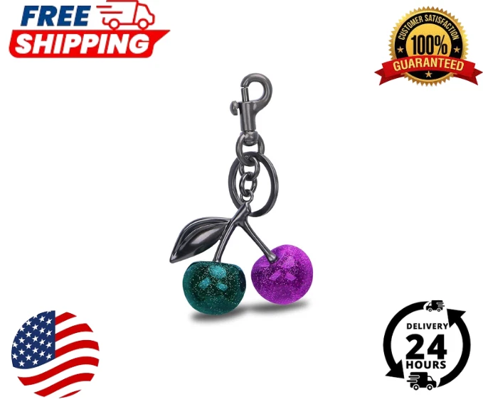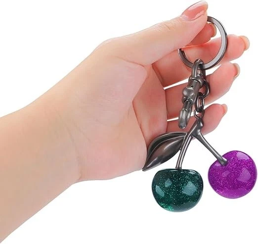 Cherry Bag Charm Cherry Keychain Charm Metal Accessory Sparkling Resin six colors available Color : Red, Black, Crystal Pink, Green + purple Red + green Leaves, Red + green Leaves+02 Description Dazzling Design: Elevate your accessory game with this sparkling cherry bag charm, boasting a vibrant glitter resin construction that's sure to catch eyes and compliments wherever you clip it. Versatile Attachment: Featuring a sturdy metal split key ring coupled this charm offers effortless attachment to your favorite handbags, backpacks, or keys for a personalized touch. Ideal Size for Statement: Measuring 2.3 inches in length and 4.7 inches in height, this charm is perfectly proportioned to make a chic statement without overwhelming your style. Durability Meets Style: Crafted with quality materials, this charm is designed to withstand daily wear and tear, ensuring that your sparkling accessory remains a constant in your collection. Gift-Ready Accessory: Looking for a fun and fashionable gift? This glitter cherry bag charm makes for a delightful present, Suitable for Wedding party favors,Graduation gift accessories,Travel souvenir keychains,Gym locker decorations,Bridal shower keepsakes,Christmas,Mother's Day personalized gifts,Pet owner key accessories,Car key organization tools, Birthday Gifts,Spring picnic accessories,Summer beach bag decorations,Kawaii handbag customization,Music festival outfit accents.
