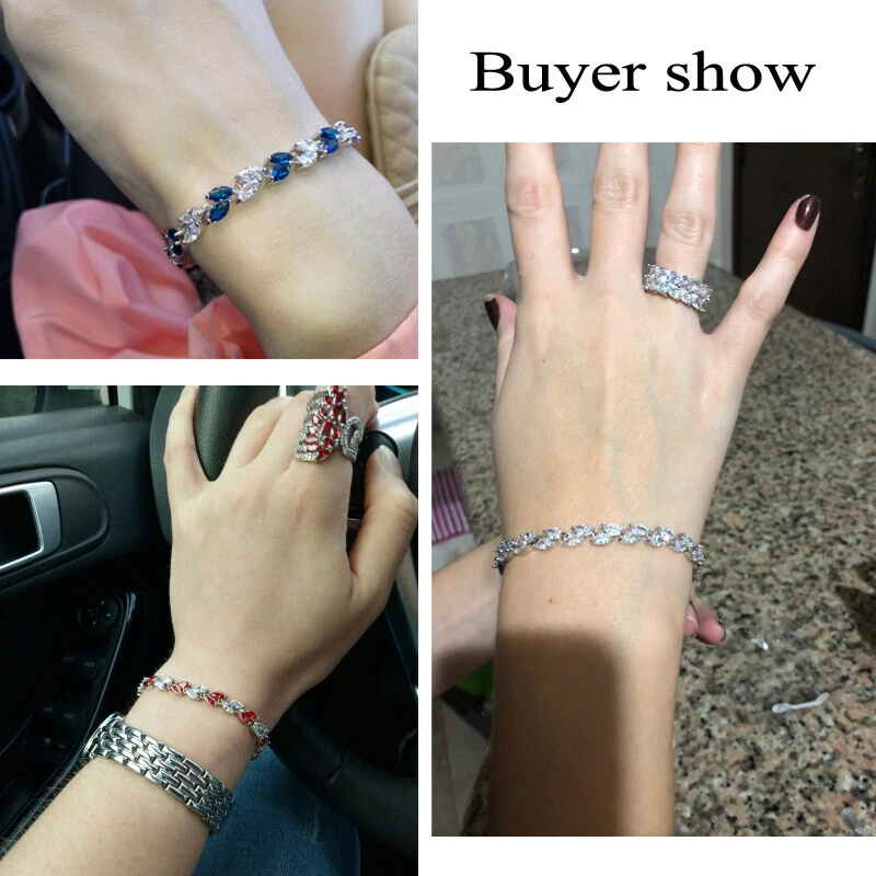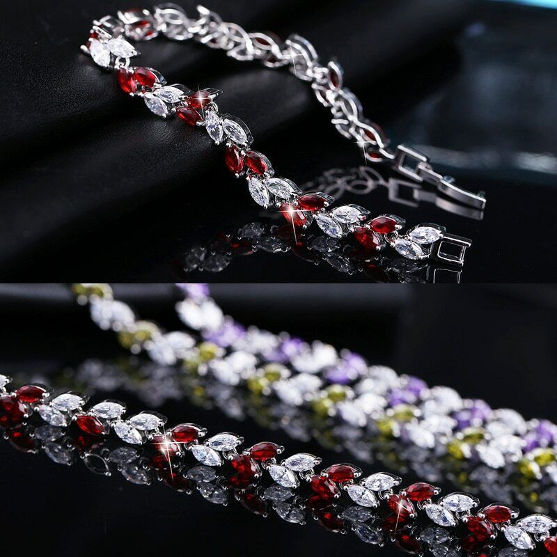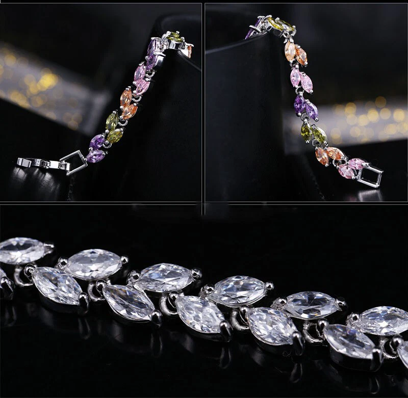 Sparkling White Cubic Zirconia Colorful Leaf Women Link Chain Bracelets Bangles Specifications: 1. Condition: New 2. Material : Cubic Zirconia 3. Bracelet Size : 17 cm + 3 cm Extended Clasp Features: 1. Cubic Zirconia High Quality Material - Diamond-like Brilliance , Prong Setting and CZ Stone are stable. 2. This Charm Bracelet Length : 17cm , Plus a 3cm free Extended Clasp . So Size can be : 17 or 20 cm 3. Perfect for Various Occasions: Ideal for Wedding, Prom, Pageant, Parties, Homecoming, Black Tie Formal Affairs, Holidays , Birthday , Christmas , Valentine's Day , Anniversary and Special Occasions. 4. A Perfect Jewelry Gift for Women , Girls , Mother , Wife , Lover , Fiancee , Friends . Package Includes: 1Pc Charm Bracelet Payment Delivery details Terms of sales & Feedbacks About us & Contact us Our commitment Payment 1. We only ship item to your Ebay verified address . Please Make sure all address are the same 2.Please leave note in ebay when making the payment if you have any special request (colors/size). Delivery details We only send items to the registered eBay address.Items will be shipped within 2 business days from the date payment is received (not include public holiday and weekend) . As per eBay regulations, import duties, taxes, and customs charges are the buyer's responsibility. Please check with your country's customs office to determine what these additional costs may be prior to bidding or buying. Terms of sales & Feedbacks After-Sale Please contact us to request a return/replace/refund authorization .It will be best if you use ebay message to contact me. 1, Return and replacement request is available only the requests within 30 days after parcel received. 2, Returning the item as the same condition as received. Situation and solution Defectives ---Please contact us and provide a photo of the defective part. After situation confirmed,we will offer you refund/return/replacement according to the situation Not as Described ---Please contact us and provide a photo of the wrong part. After situation confirmed,we will offer you refund/return/replacement according to the situation Not Received ---Please undersatnding shipping on the way was out of our control ,because of the busy shipping season,holidays,bad weather or force majeure etc. It may be delay for days. But if it took too much time and not deliveried, Please message me, I will offer you solution for it. Feedbacks 1. If you are satisfied with our service, please leave us a + Good feedback and rate the details of the transaction (DSR) with a. . When you rate the shipping time part please take international transit into consideration.] Your recognition will make us more confident to develop business and serve you better. 2. Please contact us first if you have any problem with the items,we will solve it in time ! 3. Please do not leave Neutral or Negative Feedback before you contact us, Thanks For Your Business ! About us & Contact us Working time: Chinese time(Eastern eight zones):Monday to Friday ,9:00 am to 6:00 pm. We do not work on chinese legal holiday. Message reply: We will reply all messages within 24 hours of business time. Please contact us via ebay message, it was the best way for both you and us to solve problems. Any questions or anything you need, please feel free to contact us. Our commitment 1.Wholesale price will be offered to you if you need in bulk ! 2.About Size