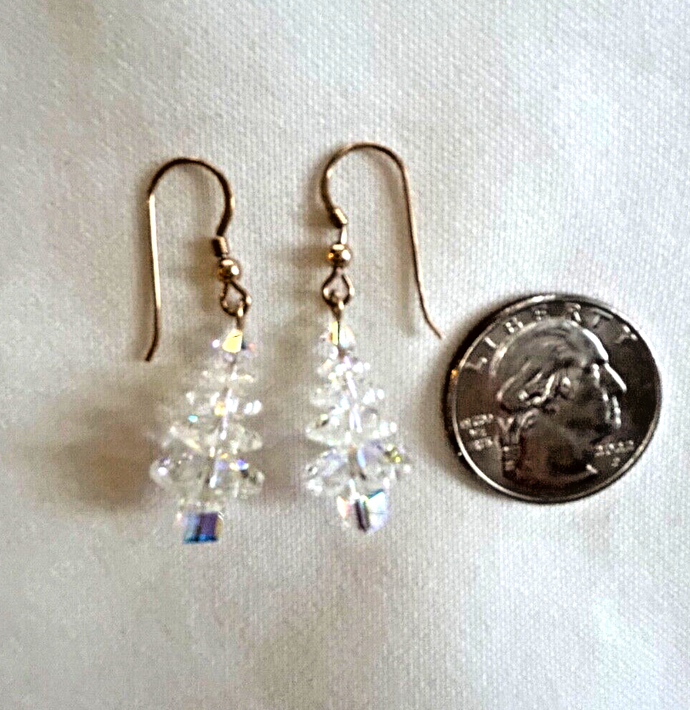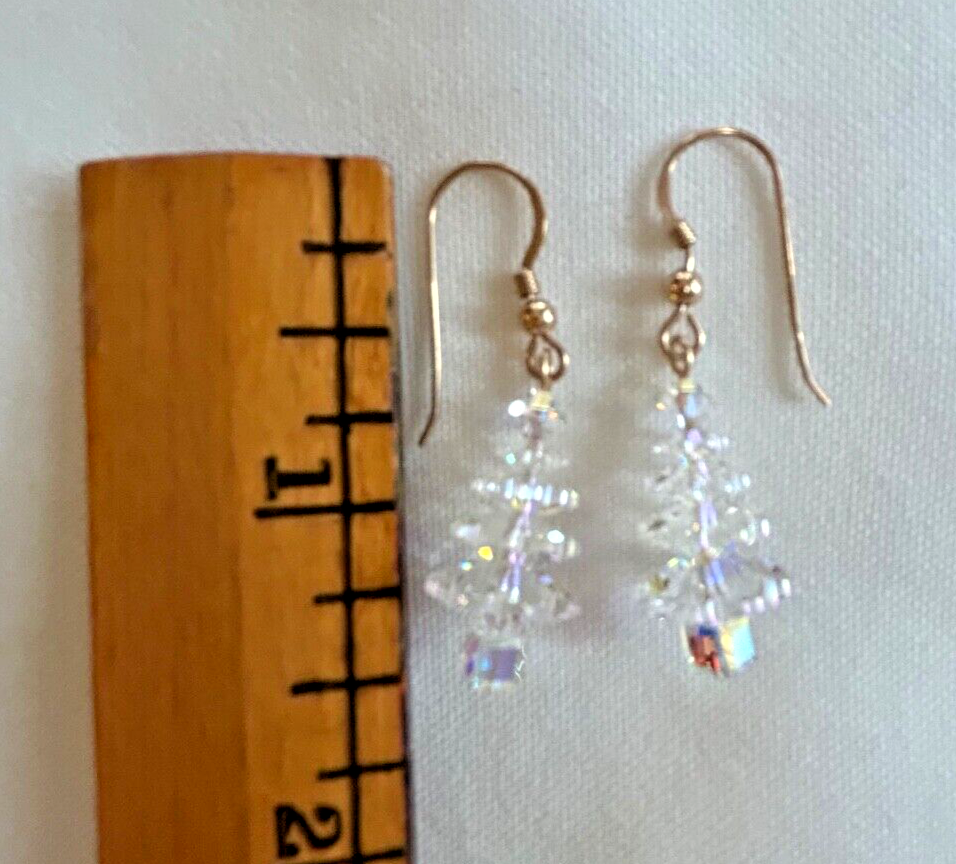 CHRISTMAS TREE EARRINGS Each new dangle earring consists of 6 pieces Swarovski Crystal AB beads. The tree is made with 6mm, 8mm, 10mm and 12mm marguerite Swarovski Crystal beads. The tree is topped with a 4mm bicone. The base is a 4mm cube. They are attached to Gold Filled french earwires. The entire length of each earring is about 1.5 inches. FREE SHIPPING AND HANDLING ON THIS ITEM!!! Visit my store for matching Swarovski Crystal bracelets and other Sterling Silver jewelry. I also carry Swarovski Crystal loose beads in 4mm, 5mm, 6mm, 8mm and 10mm sizes and multiple colors and mixes.