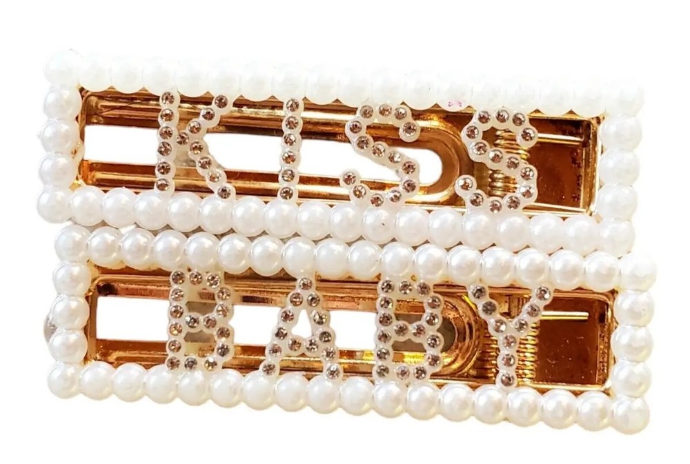 Kiss Baby Barettes Hair Clips Rhinestones and Faux Pearls Add sparkle and charm to your little one's look with these adorable Kiss Baby Barrettes. These beautiful hair clips are designed with shimmering rhinestones and elegant faux pearls, perfect for special occasions or everyday glam. Each clip holds securely and comfortably in fine or thick baby hair. Features: Brand: Kiss Style: Baby barrettes / hair clips Design: Rhinestones and faux pearls Quantity: 2 Color: white, Condition: New Age Range: Ideal for infants, toddlers, and young girls Perfect For: Baby showers Photoshoots Birthday outfits Weddings & holidays Everyday wear with a touch of sparkle