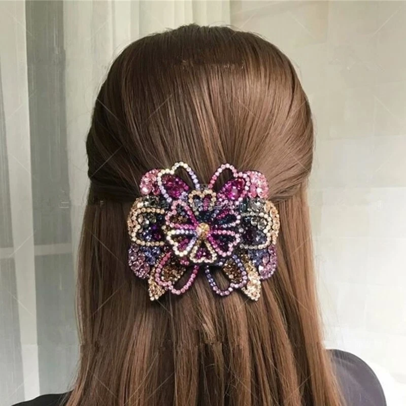 Features: Rhinestones Flower Hair Clip For Women,Rhinestones Flower Hairpin,Crystal Flower Barrette Clip,Flower Hair Clamp,Rhinestones Hair Clamp For Women Wedding,Good Grip, Hold Thick Hair in Place.Easy to use, The clip enough that the keep good grasp. Suit for All Hair Types: The hair clips are non-slip , secure grip and hold your hair tightly, not fall off easily and will not damage your hair. No complicated step, Fast hair arrangentme, for thick, thin, curly or straight hair! Flexibility, easy to use, durable and hard to break, rust resistance, not easy to damage or change color. Suitable for all kinds of people Suitable for all hairstyles of different ages.elderly, girl, mature women, mother Gift: The elegant hair claw clips are perfect gifts in Birthday Party,Valentine Day,Mother Day,Christmas or else. give dreamy feeling to women and girl. Specifications: Material:Rhinestones Size: Approx. 9.8x8cm/3.86x3.15in Color:Rose/champagne/Colorful/Purple Package Includes: 1xRhinestones Flower Hair Clip note: Please allow 1-2cm errors due to manual measurement, make sure that you do not mind before you order. Due to the difference between different monitors, the picture may not reflect the actual color of the item.