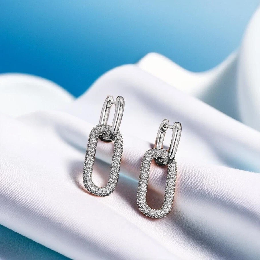 Add a touch of elegance to your outfit with these stunning sparkling silver dangle earrings. The earrings feature a beautiful round-shaped cubic zirconia stone that glimmers in the light. The earrings are 39mm in length and have a hinged closure for easy wear. These earrings are perfect for any occasion, whether it's a Christmas party, an anniversary or a christening. They are also hallmarked, making them a great gift for a loved one. The earrings are made of 900 silver and have a diffused main stone treatment. The secondary stone is cubic zirconia and the gemstone clarity grade is eye-clean. These earrings are a must-have for any jewellery collection.