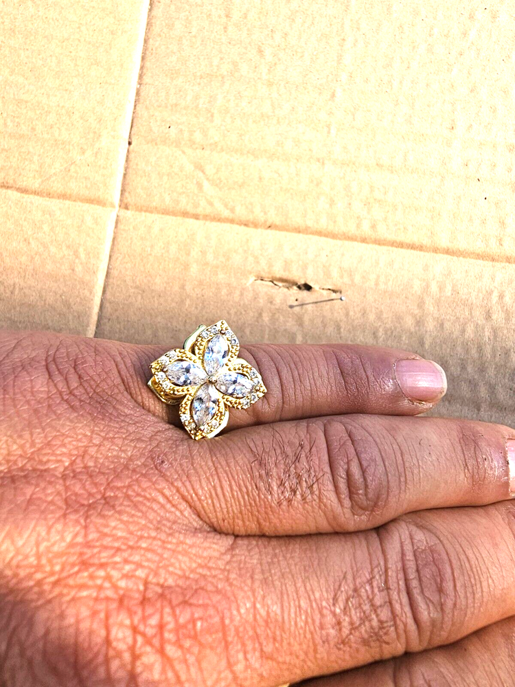 This product is an Italian gold sunflower ring, designed as a beautiful accessory for women. The ring features a sunflower motif, adding a touch of elegance and sophistication to any outfit. Its gold color enhances the overall aesthetic, making it a stylish piece that can complement a variety of styles and occasions. Perfect for adding a touch of glamour to any woman's look, this sunflower ring is sure to be a standout accessory in any jewelry collection.