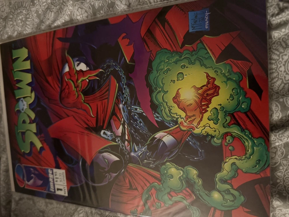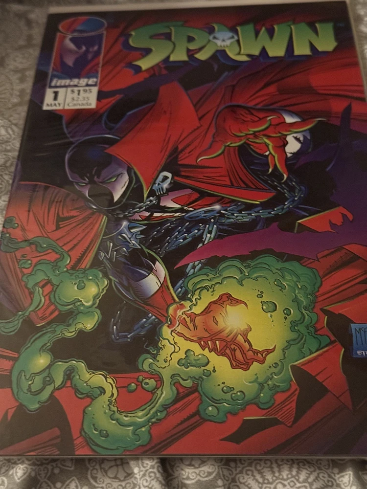 The product is the first issue of the "Spawn" comic book series, published by Image Comics and Malibu Comics in May 1992. This vintage comic features the first appearances of characters such as Wanda Blake, Timmy Bracken, Twitch, Malebolgia, Spawn, Detective Burke, Jason Wynn, and PITT. With a color style and a direct publication format, this comic is a must-have for fans of superheroes and US comics. The cover art is done by Todd McFarlane and Ken Steacy, making it a valuable addition to any comic book collection.