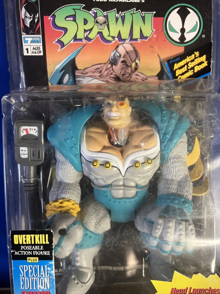 Spawn 1994 OVERTKILL Todd McFarlane Toys Series 1 Figure Blue With Comic Book