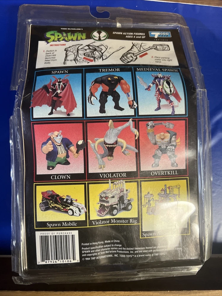 Original/Licensed Reproduction:OriginalTime Period Manufactured:1990-1999Scale:1:12Genre:ComicsEra:1980-2001Size:NAColor:Turquoise BlueCharacter:OverkillFeatured Person/Artist:Todd McFarlaneVintage:YesConvention:NAUPC:787926101065Character Family:SpawnCountry/Region of Manufacture:ChinaFeatures:Head Launches from Body, Series One, Factory SealedType:Action FigureRecommended Age Range:4 and upProduct Line:SpawnMPN:10106Year Manufactured:1994Accessory Type:NAYear:1994Model:Head LaunchingCustom Bundle:NoTheme:Comic BookFranchise:SpawnPackaging:Original (Opened)Material:Plasticgtin13:787926101065Brand:McFarlane Toys