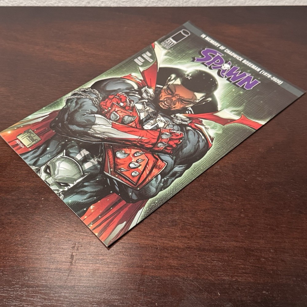 Spawn #311 (2020) — In Memory of Chadwick Boseman (1976–2020) Iconic tribute cover by Todd McFarlane, honoring the late Chadwick Boseman, star of Black Panther. This issue features Spawn posing in Boseman’s signature Wakanda Forever stance, making it one of the most sought-after modern tribute covers. 🕷️ Details: • Publisher: Image Comics • Release Year: 2020 • Cover Price: $2.99 • Writer: Todd McFarlane • Artist: Carlo Barberi • Variant: Chadwick Boseman Tribute (Cover A) • Condition: NM (Near Mint) — sharp corners, clean spine, bagged & boarded • Tribute Edition – limited print honoring Boseman A must-have collectible for fans of Spawn, Black Panther, and Todd McFarlane art.