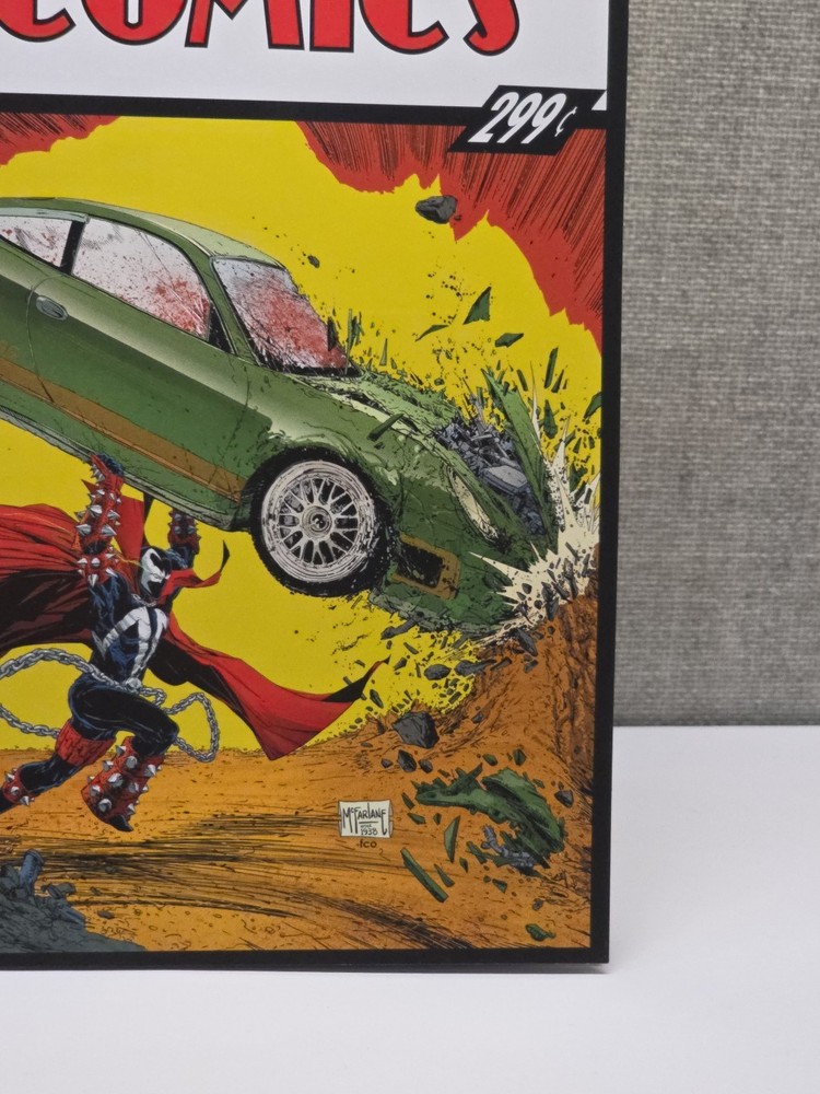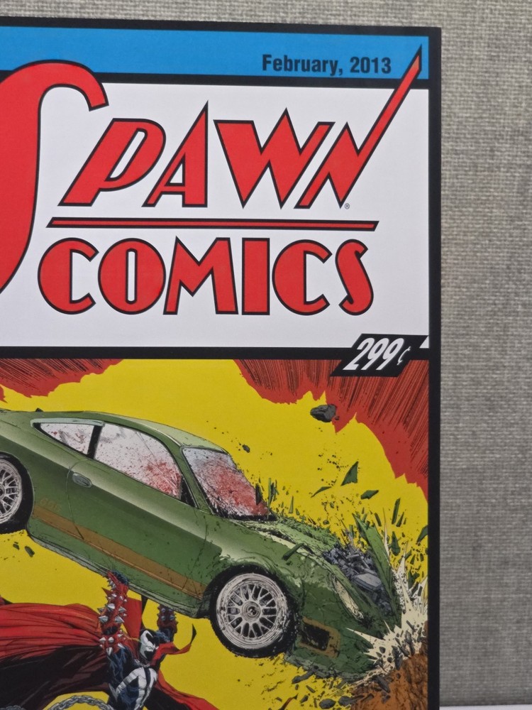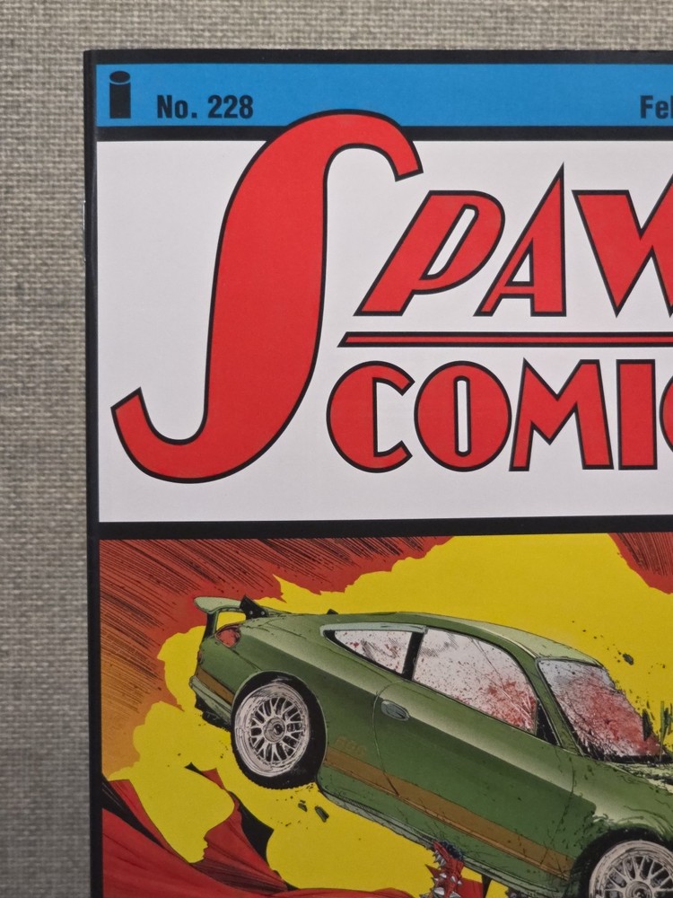 The Spawn Issue #228 comic book features a Todd McFarlane Action Comic #1 homage cover, paying tribute to the iconic comic book series. Published by Image Comics in 2013 during the Modern Age era, this single issue showcases the character Spawn in a superhero genre setting. With vibrant color artwork and a focus on action, this collectible comic book is a must-have for fans of the series and graphic novel enthusiasts alike.