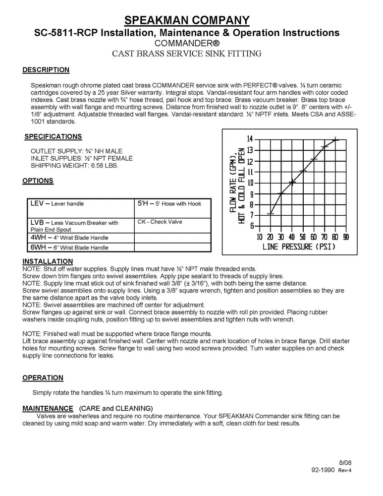 UTILITY FAUCET: This durable commercial sink faucet is a reliable fixture for utility sinks, janitorial closets and other maintenance services and features a useful spout hose thread and pail hook. PREMIUM QUALITY: Made of cast brass, the utility or laundry faucet is ideal for placement over big utility sinks, and features lever handles and ¼ turn ceramic sink faucet cartridges. WALL MOUNT: Sink faucets are designed for through the wall mounting, and are supplied with wall flanges and mount screws along with a brass top brace assembly. COORDINATING COLLECTION: This commercial wall mount faucet is part of our Commander range of sink fixtures and accessories, which includes a range of kitchen, restroom and laboratory faucets. SPEAKMAN PLUMBING: From commercial plumbers’ supplies to bathroom accessories to fall in love with, Speakman delivers quality, innovation and performance with every product.