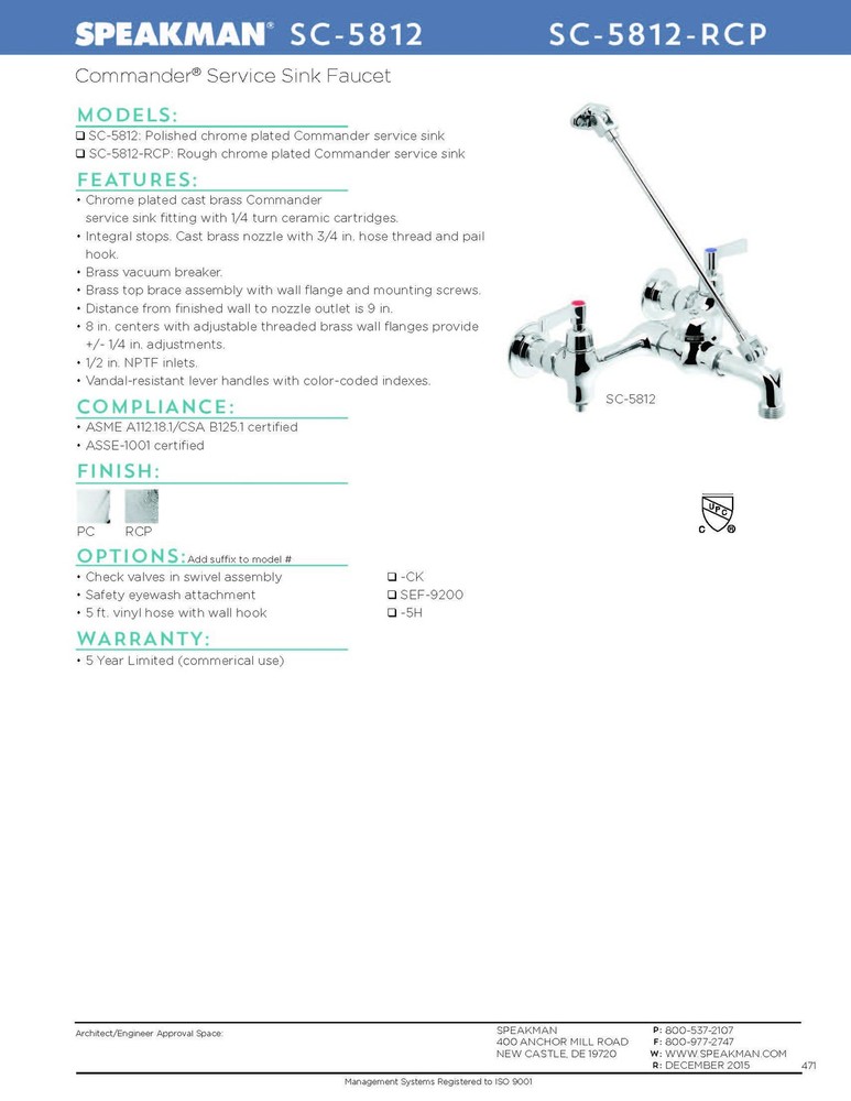 Speakman SC-5812-RCP Commander Utility Sink Faucet in Rough Chrome Finish