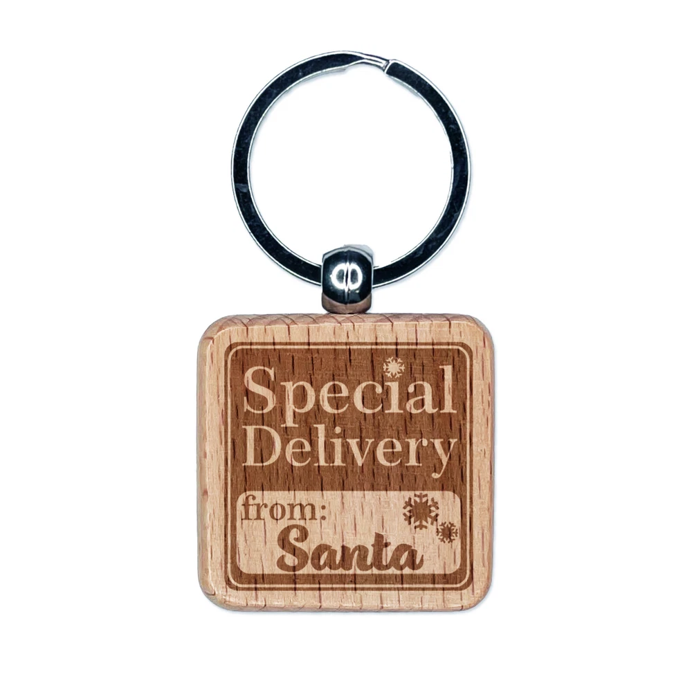 Special Delivery from Santa Christmas Engraved Wood Square Keychain Tag Charm