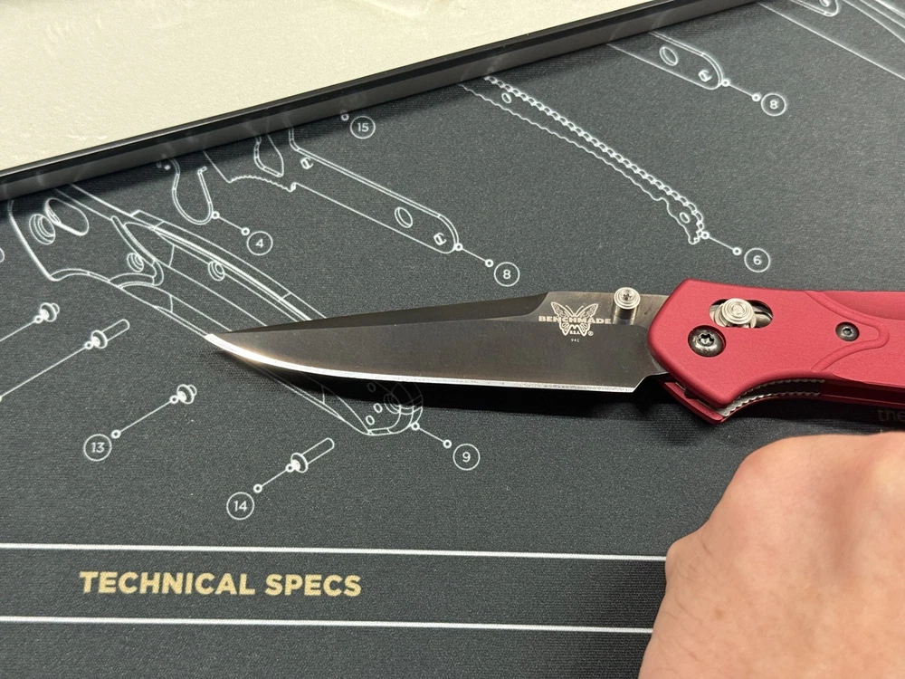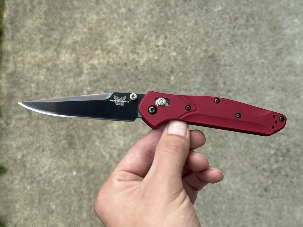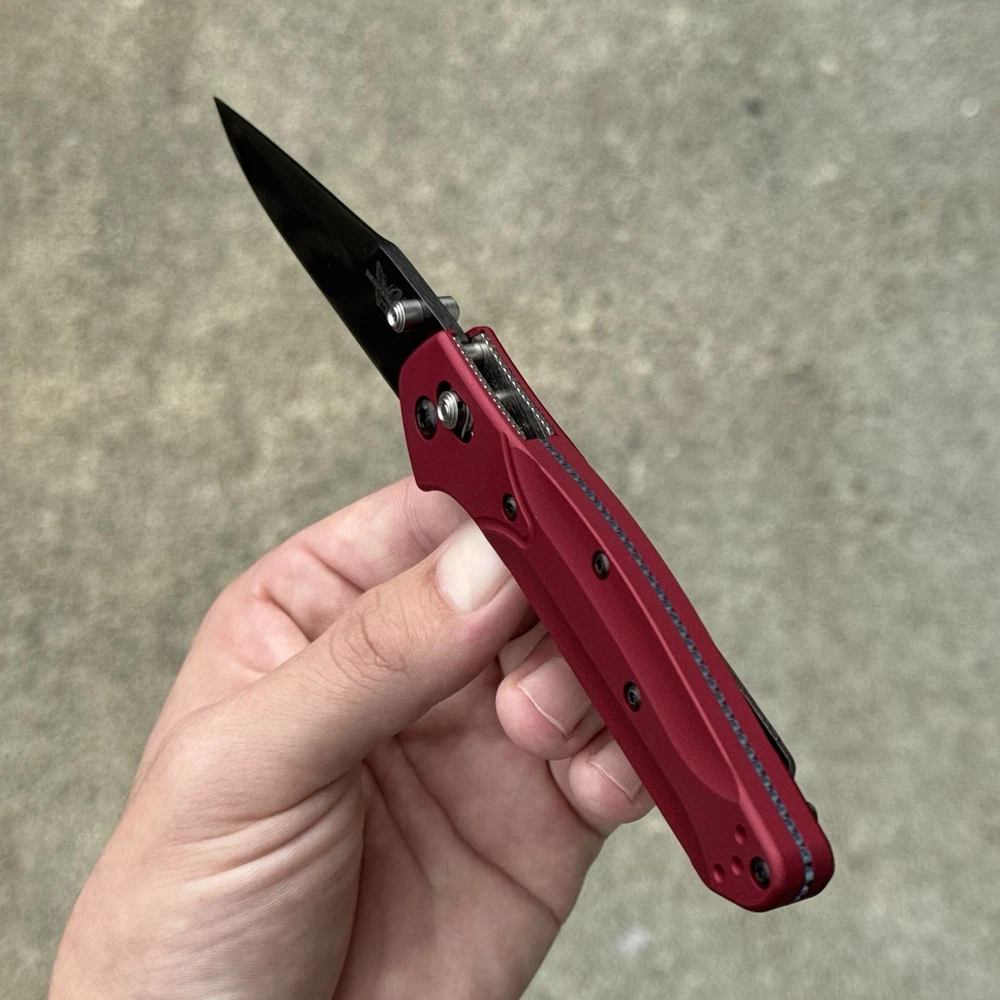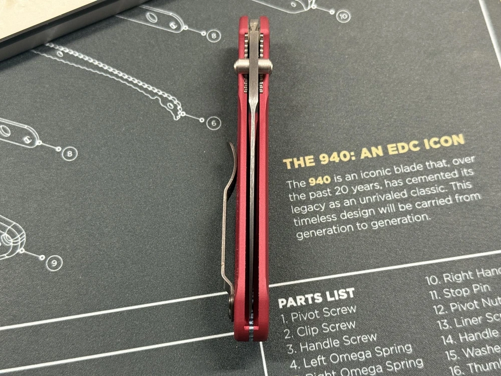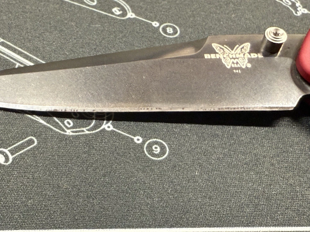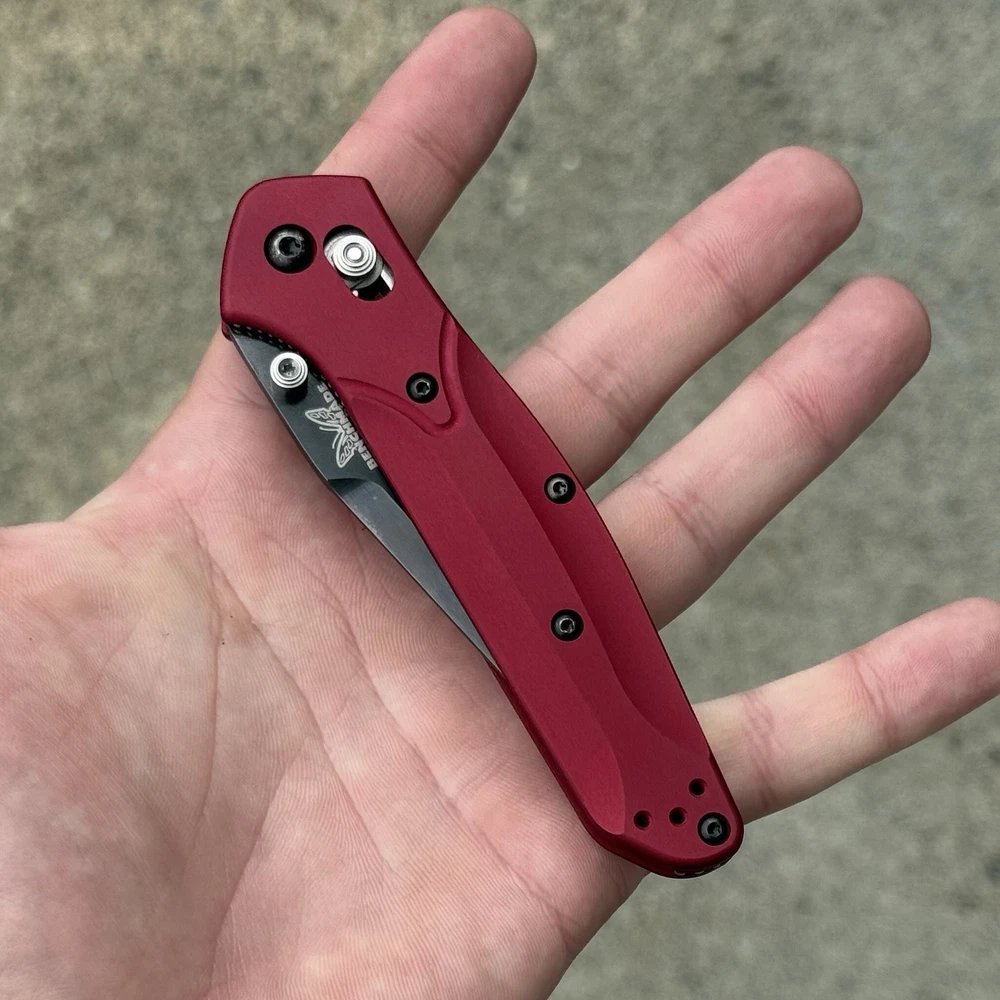 Benchmade 941BC1RED similar to the 940BC1RED but in the more sought after variant, the rare 941 -Unique Red Anodized Aluminum handle in 154cm steel with BC1 coated clip point blade - LNIB beautiful condition, no scuffs on the handle perfect collectors edition (some marks on blade edges since it has been sitting in the box since 2002 picture listed, simply strop the blade and they will disappear). It has been a safe queen since, with no cutting - box and sleeve included. Special Edition #085 out of #500, limited to #500 pieces, the number in circulation will drop over time with pieces getting harder to source since release of this particular 941 was in the year 2002. Please contact me with any questions! Thanks
