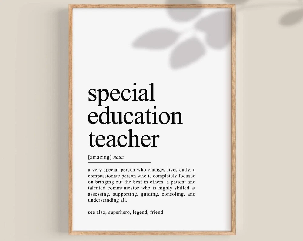 Special Education Teacher Definition Print Special Ed Teacher Gift Special Education Sped Teacher Appreciation Wall Art Material: Premium luster photo paper Print type: Inkjet printing One side printed + The finish provides the highest possible resolution and color saturation + Lasts up to 200 years in color and 400 years in black-and-white + Printed on high-quality resin-coated photo base paper medium + Posters can be hung with double-sided tape, tacks, or framed + Hand washing with a gentle cry cloth is recommended for extended durability I will hand select the best choice of paper for your chosen design to ensure top quality results for a beautiful, bright and luxurious print. All prints are sealed in cellophane slips for protection during transportation, and are shipped in a protective cardboard envelope.