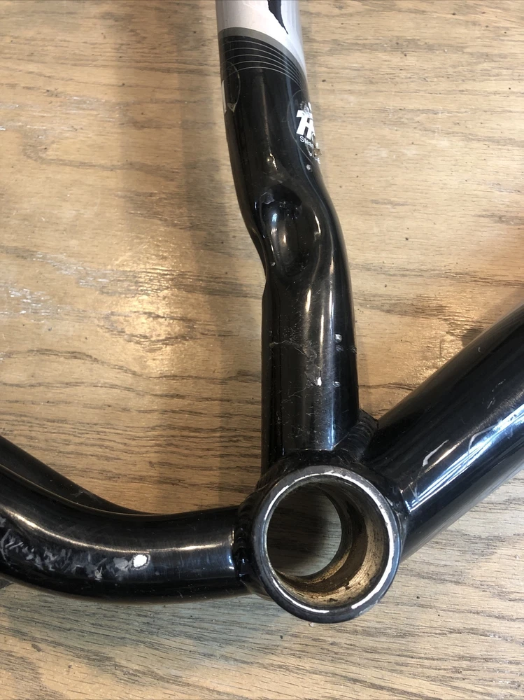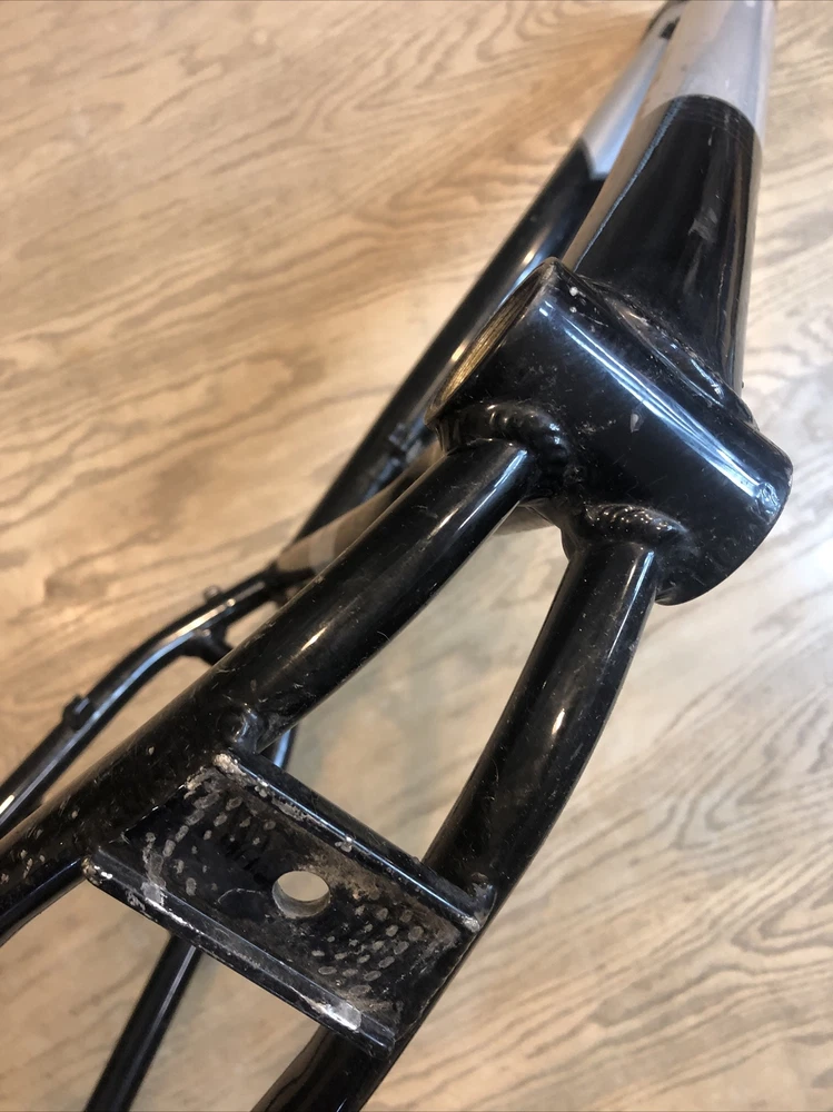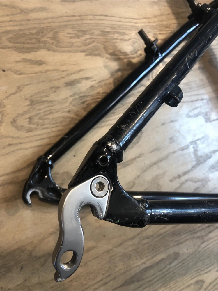 Thank you for your interest in this excellent frame with a history of moderate use. There are numerous surface marks, scratches and paint chips. The drop outs, bottom bracket threads and head tube are in good shape. Measurements: Seat tube center of BB to collar: 16” Top tube actual: 22.5” Head tube: 1-1/8” x 19cm Dropouts: 135mm QR