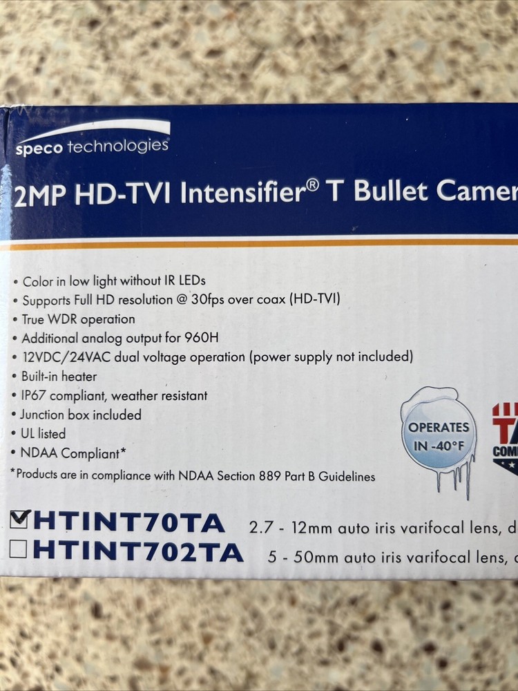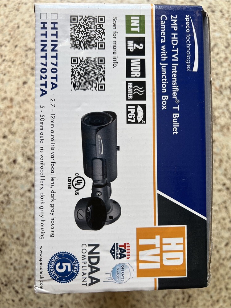 Enhance the quality of your surveillance footage with the Speco Technologies HTINT702T HD-TVI 2MP Intensifier T Bullet Camera. This camera boasts a maximum resolution of 1920 x 1080 at 25/30 fps, ensuring that you get the clearest possible footage. It also features an auto and manual response time, with a flicker mode, to ensure that you never miss a moment. The camera is designed for easy installation and use, with a weight of only 3.1 lb (1.4 kg). It is ideal for use in consumer electronics, surveillance and smart home electronics, and home surveillance. The Speco Technologies HTINT702T is a great choice for anyone who wants to invest in their security and keep an eye on their property at all times.