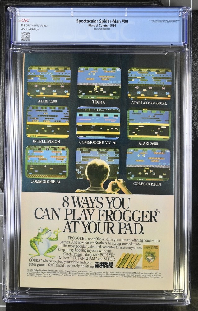 Publication Year:1984gtin13:Does Not ApplyUPC:Does Not ApplySeries Title:Spectacular Spider-ManSigned:NoCertification:CGCVintage:YesFormat:Single IssuePublisher:Marvel ComicsIntended Audience:General AudienceUnit of Sale:Single UnitStyle:ColorMain Character:SPECTACULAR SPIDER-MANProfessional Grader:Certified Guaranty Company (CGC)Issue Number:90Country of Origin:United StatesPersonalized:NoEra:Bronze Age (1970-83)Game Name:SPECTACULAR SPIDER-MANType:Comic BookInscribed:NoGrade:9.8 Near Mint/MintTradition:US Comics