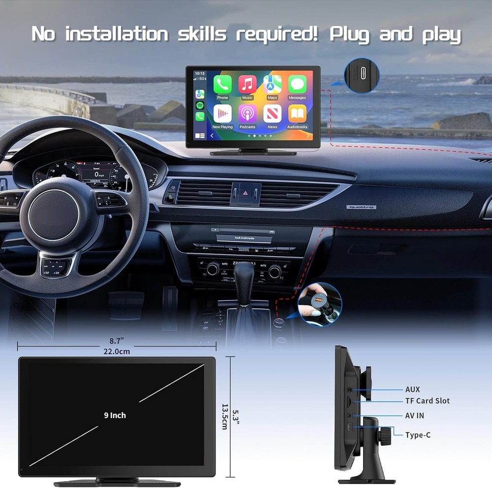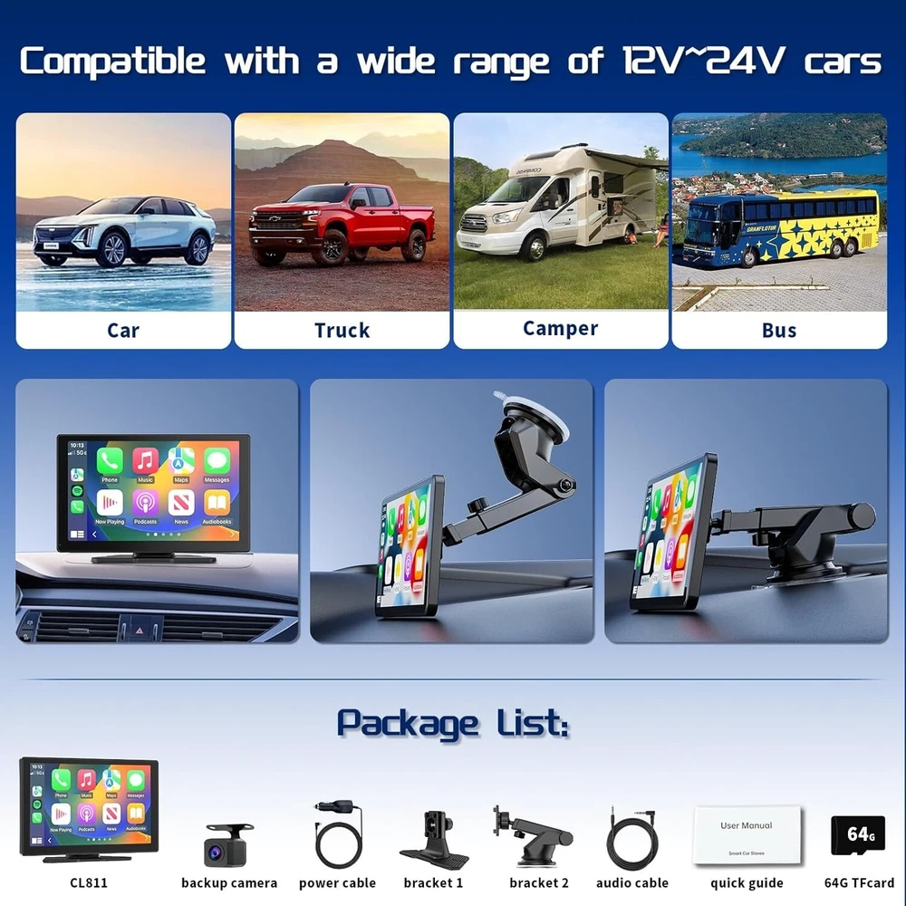 -Brand New - Never Used - Questions: Feel free to ask any Questions - BOX: Never Opened - DESCRIPTION: Seamless CarPlay & Android Auto: Enhance driving with the Spedal CL811; features a 9-inch screen; supports wireless CarPlay and Android Auto; auto-syncs your smartphone for navigation, music, and apps; use Siri and Google Assistant for hands-free control Dual Dash Cams: 2K Front + 1080P Backup: Capture road details with dual cameras; includes a 2K front camera and 1080P waterproof backup camera with 140° viewing; night vision ensures clarity in low light; includes a 64GB TF card for loop recording Enhanced Audio with Bluetooth & FM: Experience upgraded audio with Bluetooth stereo output; connect via FM or AUX for versatile listening; perfect for enhancing sound quality of your favorite media 9-Inch Screen with Mirror Link: Enjoy vivid entertainment on the 9-inch HD screen; Mirror Link supports iOS and Android devices for seamless streaming of movies, shows, or navigation maps Voice Control with Siri & G00gle: Stay connected while driving with voice commands; the built-in mic allows easy use of Siri or Google Assistant for navigation, messaging, and calls, keeping your hands on the wheel Real-Time Navigation: Navigate confidently with real-time GPS on the 9-inch screen; use apps like Google Maps and Waze for accurate, up-to-date directions synced with your smartphone USA-Based Customer Support: The Portable Car Stereo is supported by a dedicated team in Indiana, USA, ensuring responsive and reliable service for your peace of mind; includes a 1-year service commitment to keep you covered Important Tips about AirPlay: If AirPlay faces issues after an iOS update, download the latest firmware from the Spedal website or contact support for help - OFFERS: Reasonable offers are considered, LOWBALLERS, Best price and Lowest askers will be ignored - all sales final/no refunds/ no exchanges/ no returns - Disclaimer: I do not own the brand's trademarks, logos, pictures, or products posted. I do not intend to infringe on copyright. I find such content available on the internet. Contents are considered fair use. -Spedal CL811 Car Play Screen with 2K Dash Cam, 9" Wireless Carplay Android Auto Portable Car Stereo, GPS Navigation, Car Audio Receivers with 1080P Backup Camera, Bluetooth,Mirror Link, AUX/FM