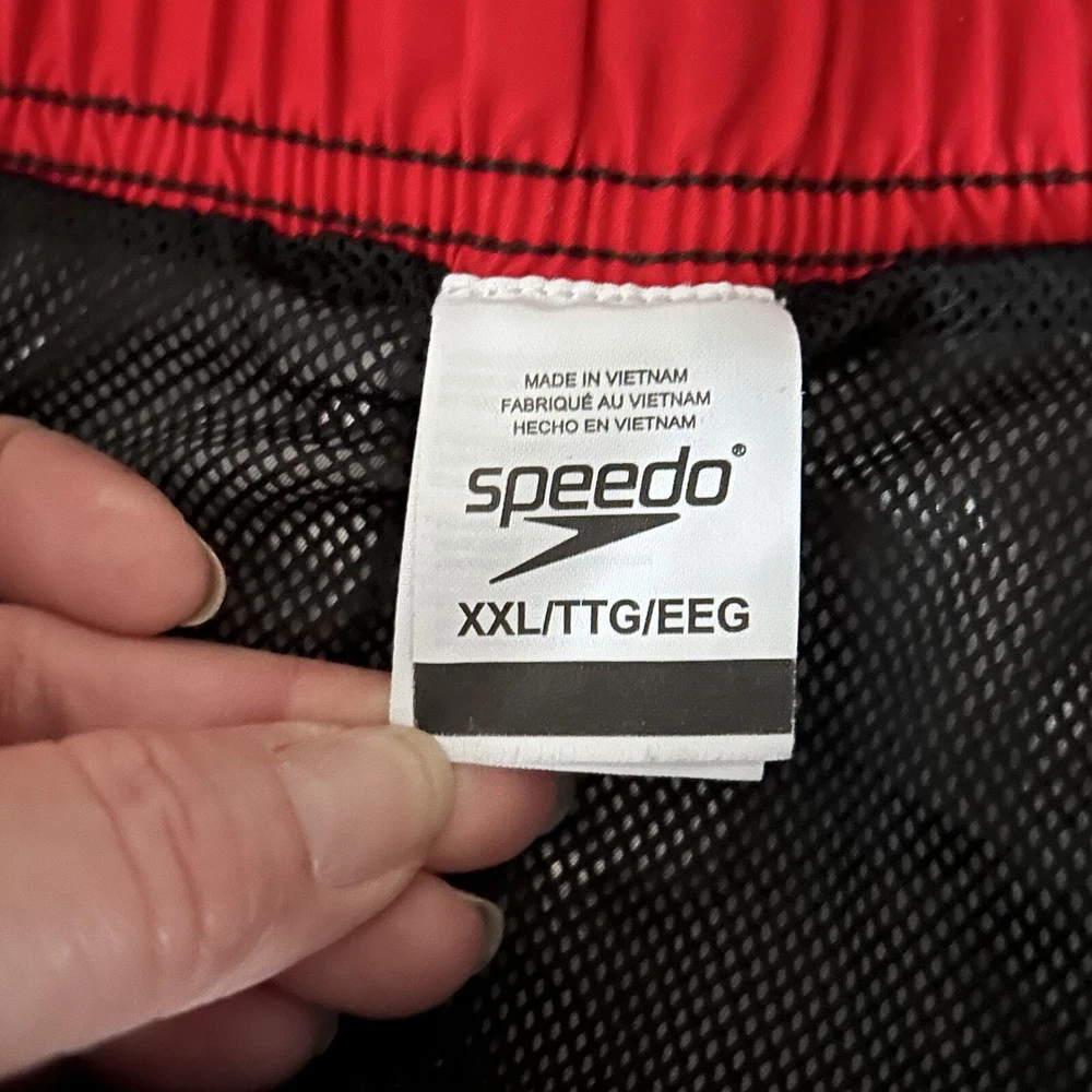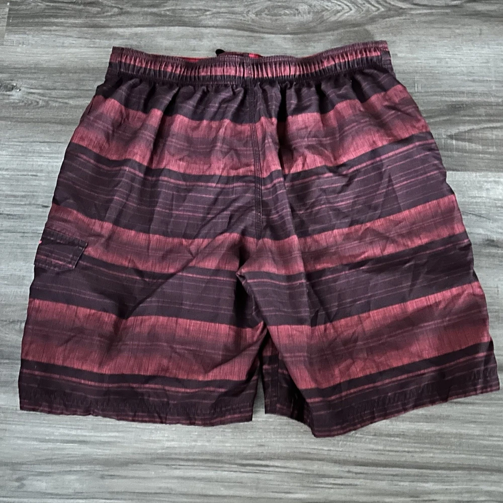 Speedo Burgundy Stripe Swim Trunks Men Size XL. Speedo Burgundy Stripe Swim Trunks Men Size XL in great condition/ one cargo pocket / elastic waist with front tie - Please See All measurements Waist 17” across Length 22” Approximate measurements #17 Hawaii, pool party, beach, surf, luau