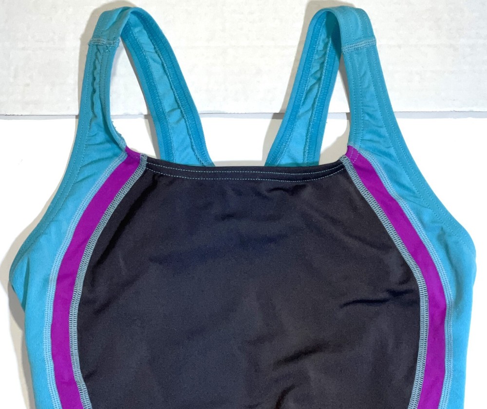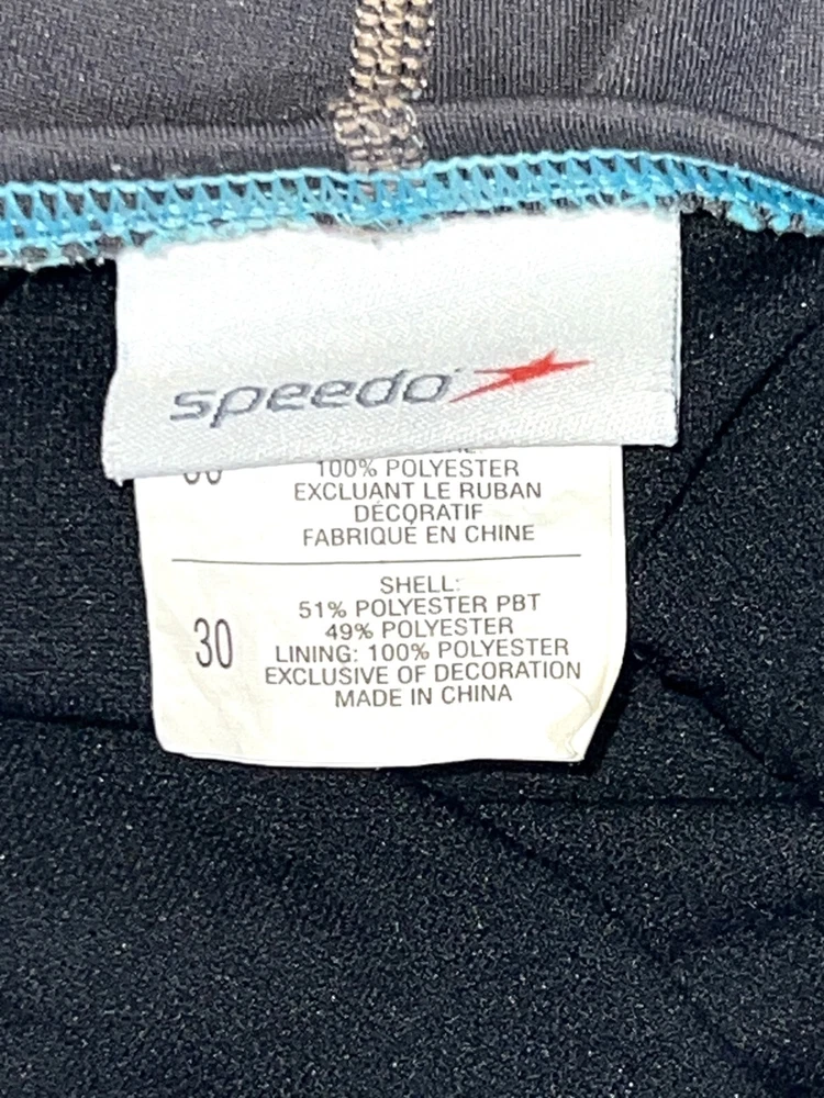 Speedo Race Quantum Splice Super Pro One-Piece Striped Colorblock Bathing Suit Swimsuit ~ Women's Size 30. Measures: 13" flat across the front from underarm to underarm unstretched and 23" from shoulder to crotch.