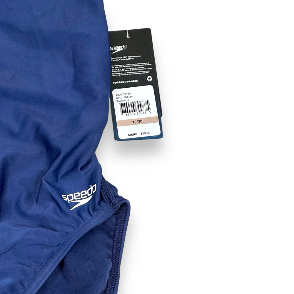 Elevate your swim training and competition with the Speedo Women's ProLT Super Pro Solid One Piece Swimsuit in Navy. Designed for serious swimmers and fitness enthusiasts, this swimsuit combines superior comfort, durability, and performance, making it a must-have for your swimwear collection. Key Features: ProLT Fabric: Crafted with Speedo's ProLT fabric, this swimsuit offers excellent support and comfort, perfect for both training sessions and competitive events. The fabric is designed to retain its shape and color, even after frequent use. Super Pro Back Design: The Super Pro back provides exceptional support and a full range of motion, making it ideal for intense training and competitions. Solid Navy Design: The classic navy color gives this swimsuit a sleek and professional appearance, making it suitable for team events, competitions, and regular practice sessions. Comfortable Fit: Engineered to offer a snug, secure fit, this swimsuit stays in place during starts, turns, and finishes, allowing you to focus on your performance without distractions. Quick-Drying: The quick-drying fabric ensures you stay comfortable both in and out of the water, making it ideal for long swim sessions. Specifications: Brand: Speedo Model: ProLT Super Pro Solid Color: Navy Size: 12/38 (Women's) Material: 85% Polyester, 15% Spandex Condition: Brand new with tags, in original packaging. Shipping: Fast and reliable shipping within 1 business day. Returns: 30-day returns accepted. Buyer pays return shipping. Upgrade your swimwear with the Speedo Women's ProLT Super Pro One Piece Swimsuit. Whether you're preparing for a competition or perfecting your skills, this suit offers the durability and performance you need to excel. Order now and swim with confidence in your next session!