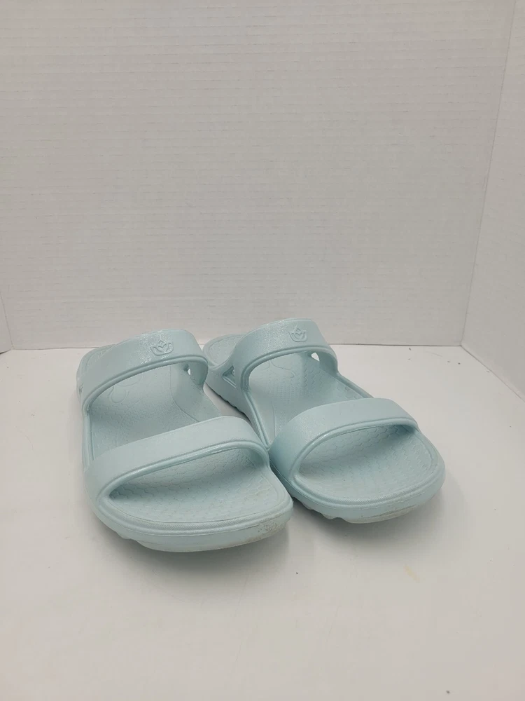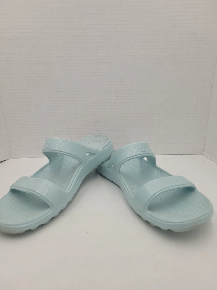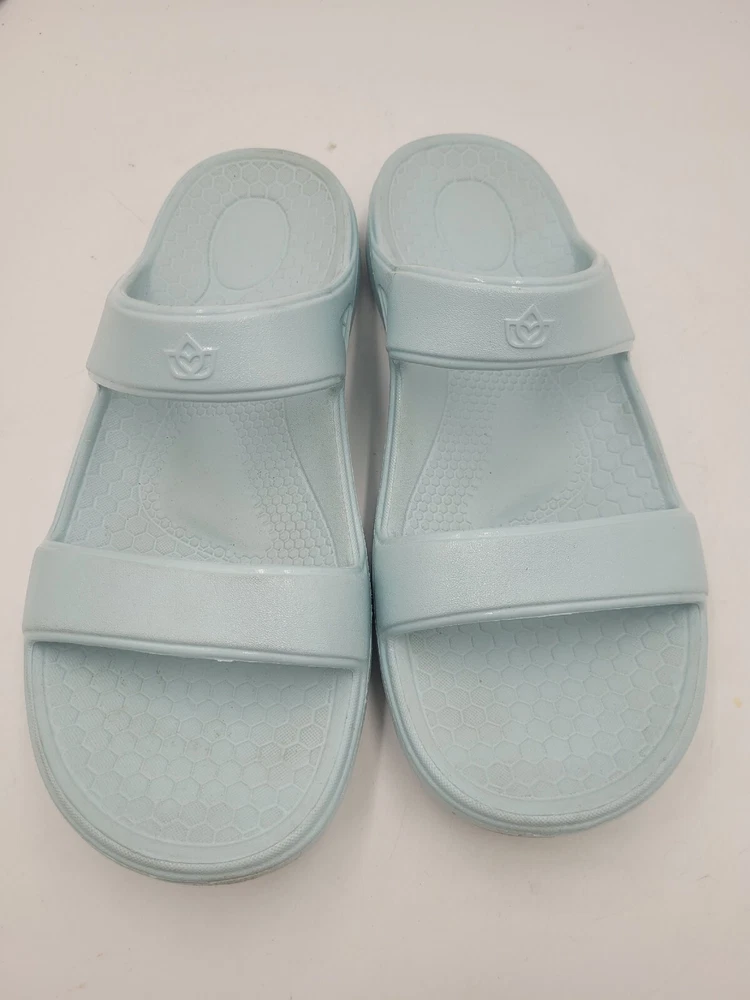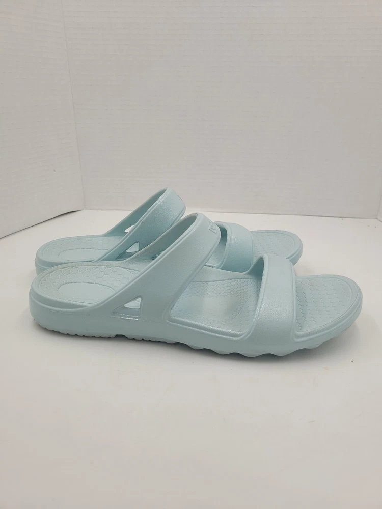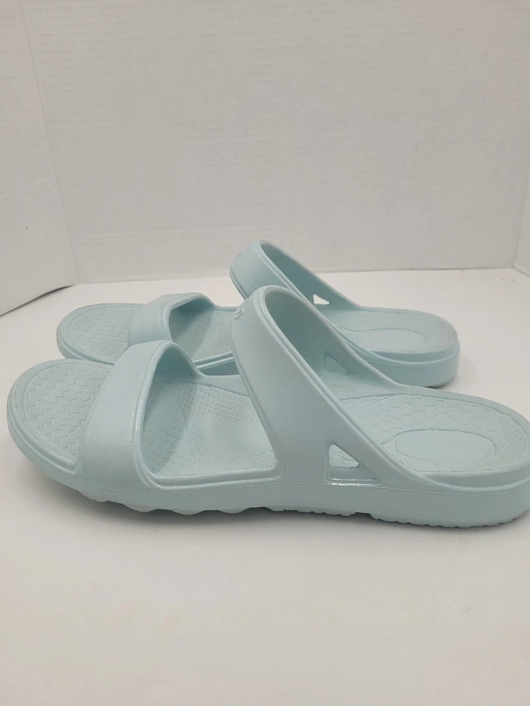 Step up your comfort game with these Spenco Fusion Slim slide sandals. Designed with arch support, cushioning, slip resistance, and orthopedic features, these sandals are perfect for all-day wear. They are lightweight, waterproof, and breathable, making them ideal for winter, summer, fall, and spring. These sandals have a round toe shape, slip-on closure, and a flat heel style. The light blue color, strap accents, and solid pattern give them a modern and beachy vibe. These sandals are perfect for travel, activewear, casual wear, and more. Get ready to enjoy your all-day comfort with these Spenco Fusion Slim slide sandals. X