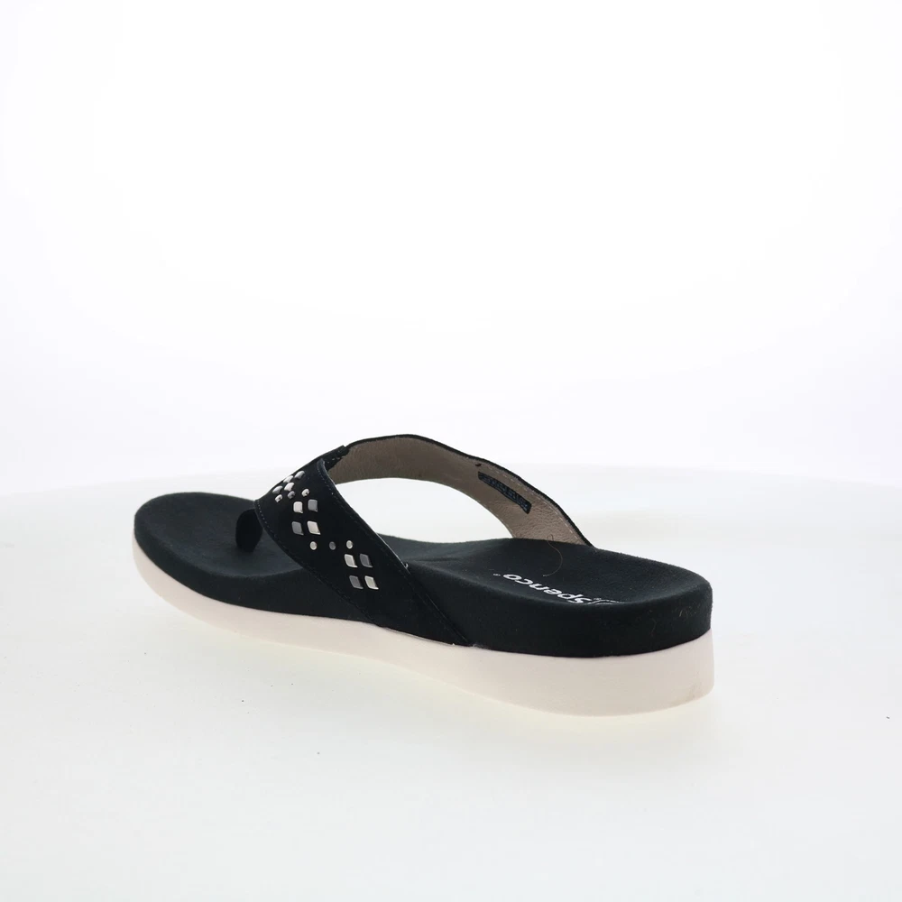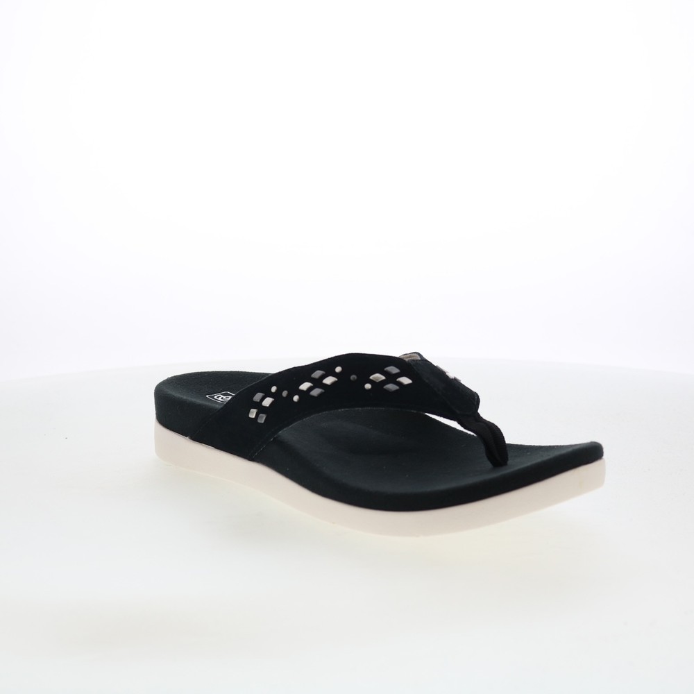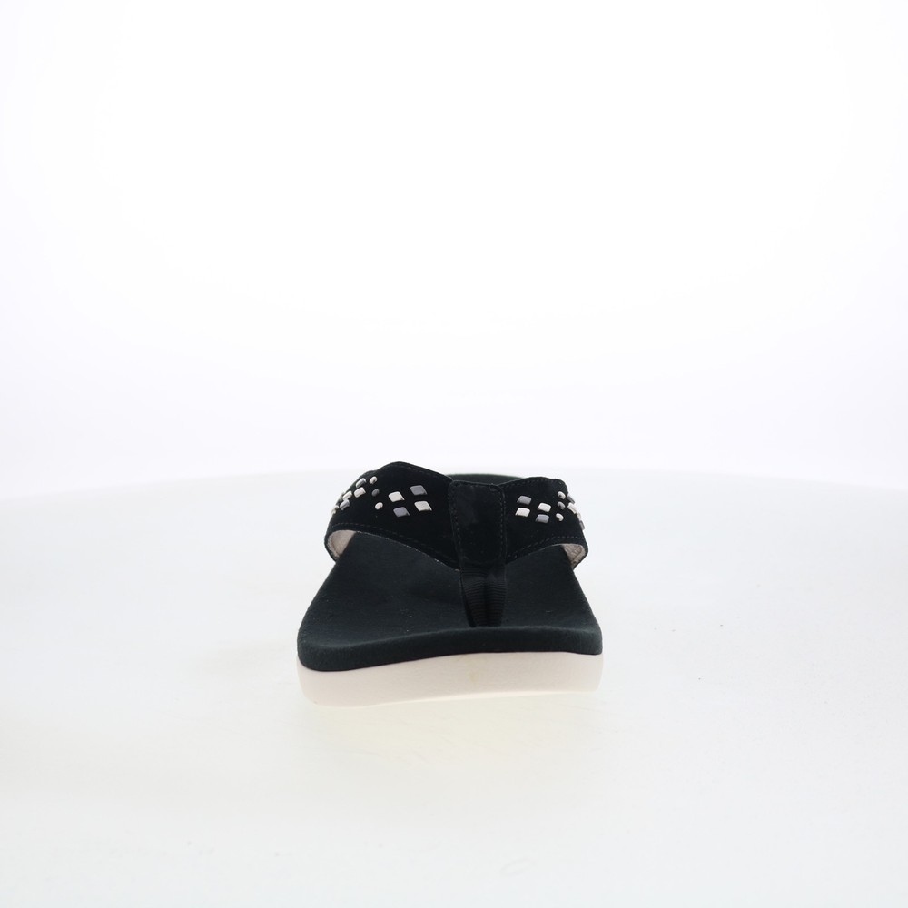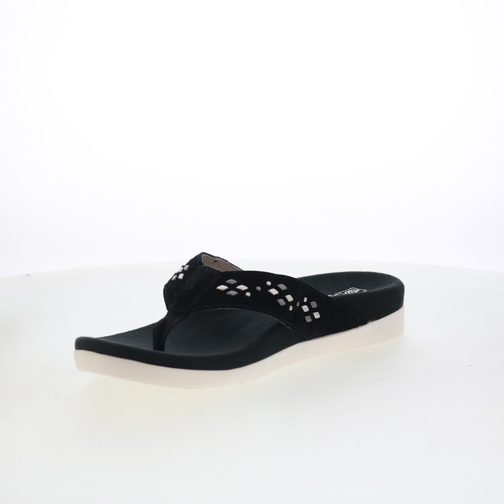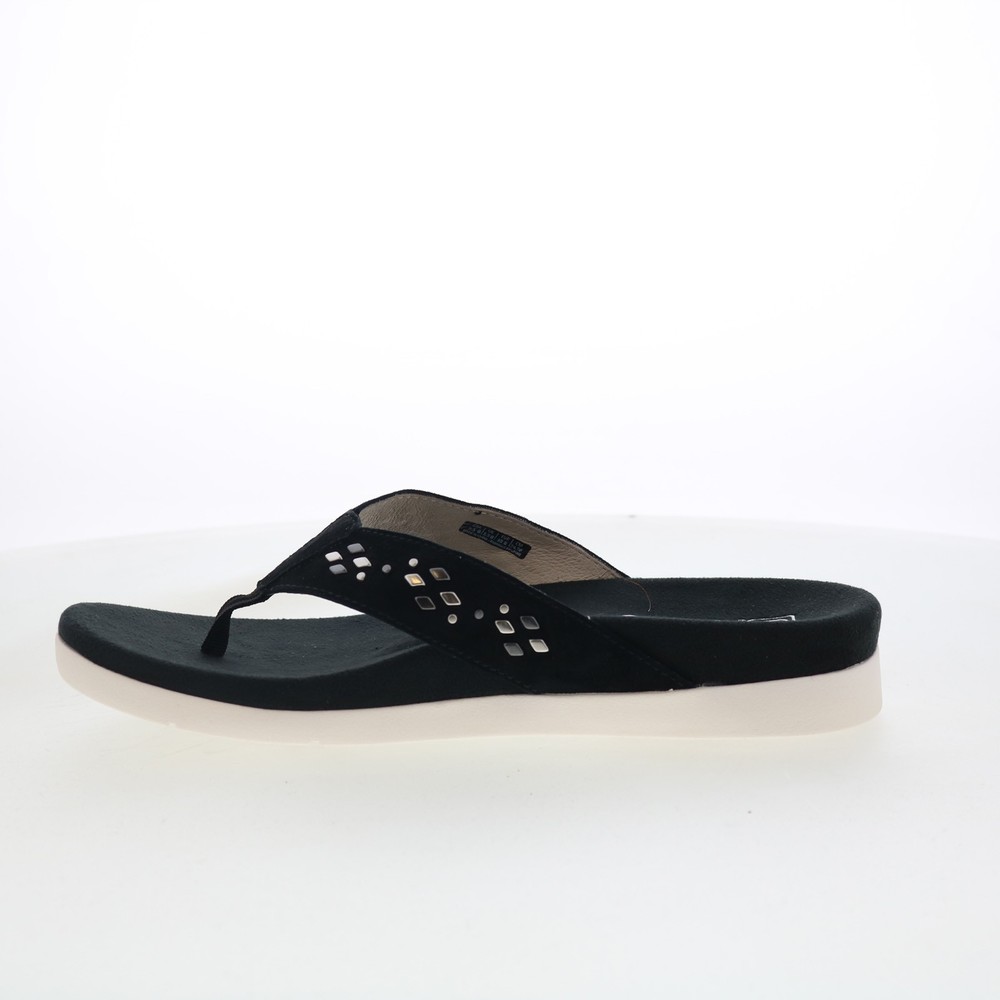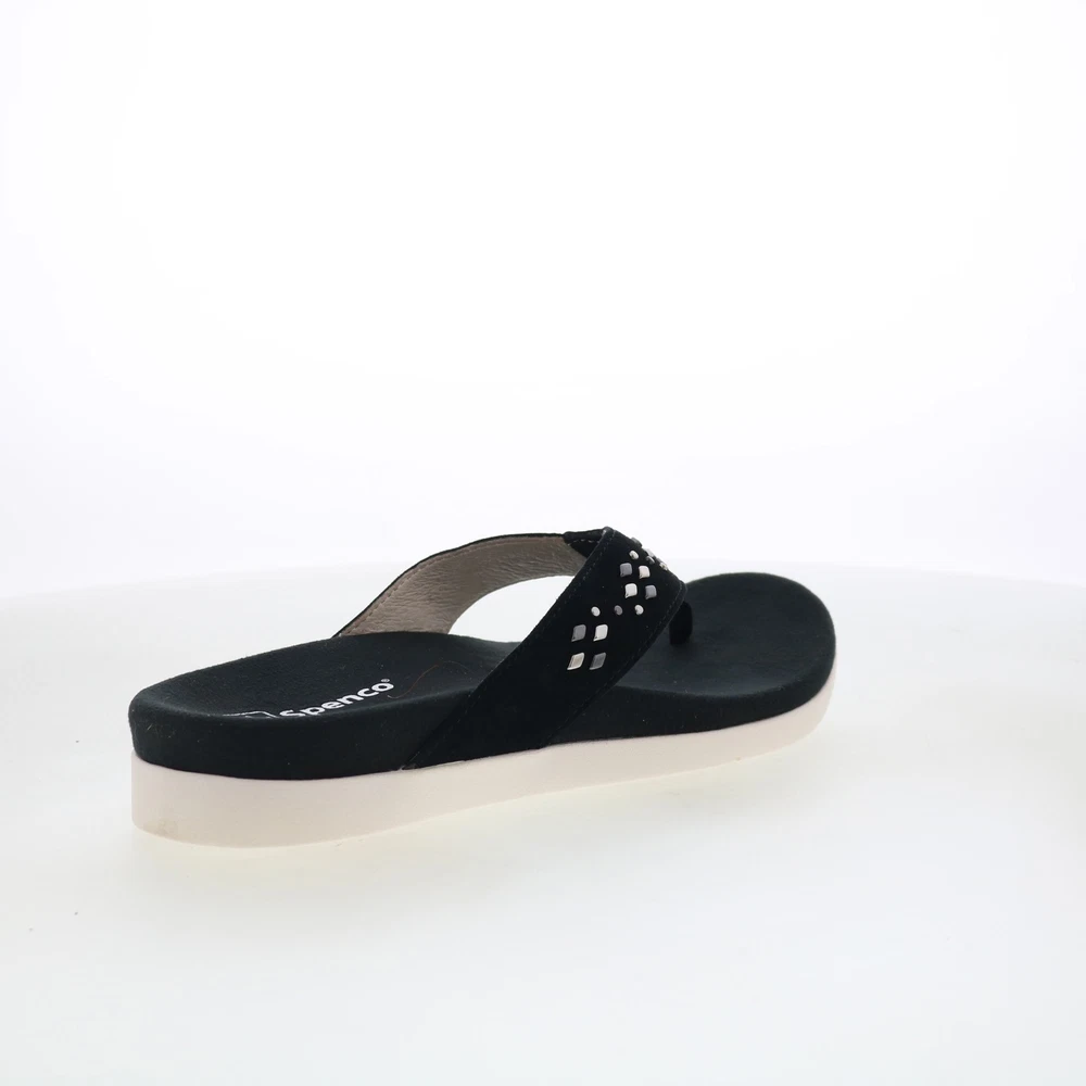 $ 30.1Spenco Starboard SP1084BLK Womens Black Leather Flip-Flops Sandals Shoes