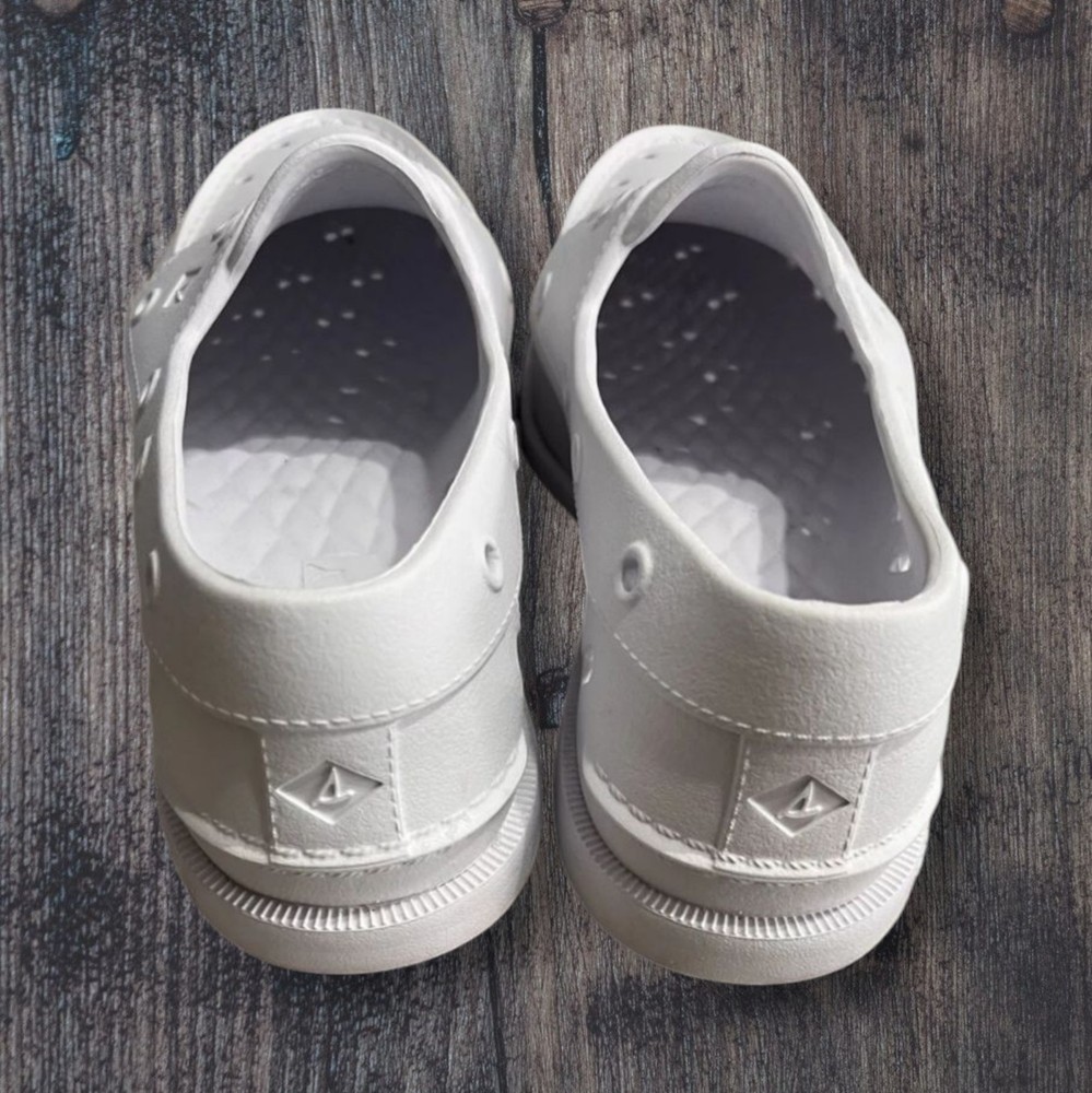 The Sperry Authentic Original Float in a crisp white hue offers a seamless blend of comfort and classic style. Crafted with a synthetic upper for durability, these versatile slip-ons are designed to cater to both men's size 9 and women's size 11. Perfect for casual outings, these shoes provide an easy-going fit that's hard to come by. With a nod to nautical charm, these shoes feature a design that's as timeless as it is comfortable. Whether you're heading out for a day at the office or a relaxed weekend, the lightweight construction ensures you stay on your feet with ease, making them an essential addition to any footwear collection.