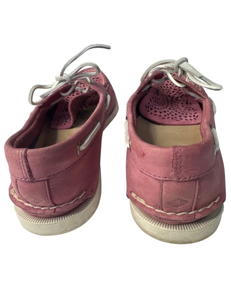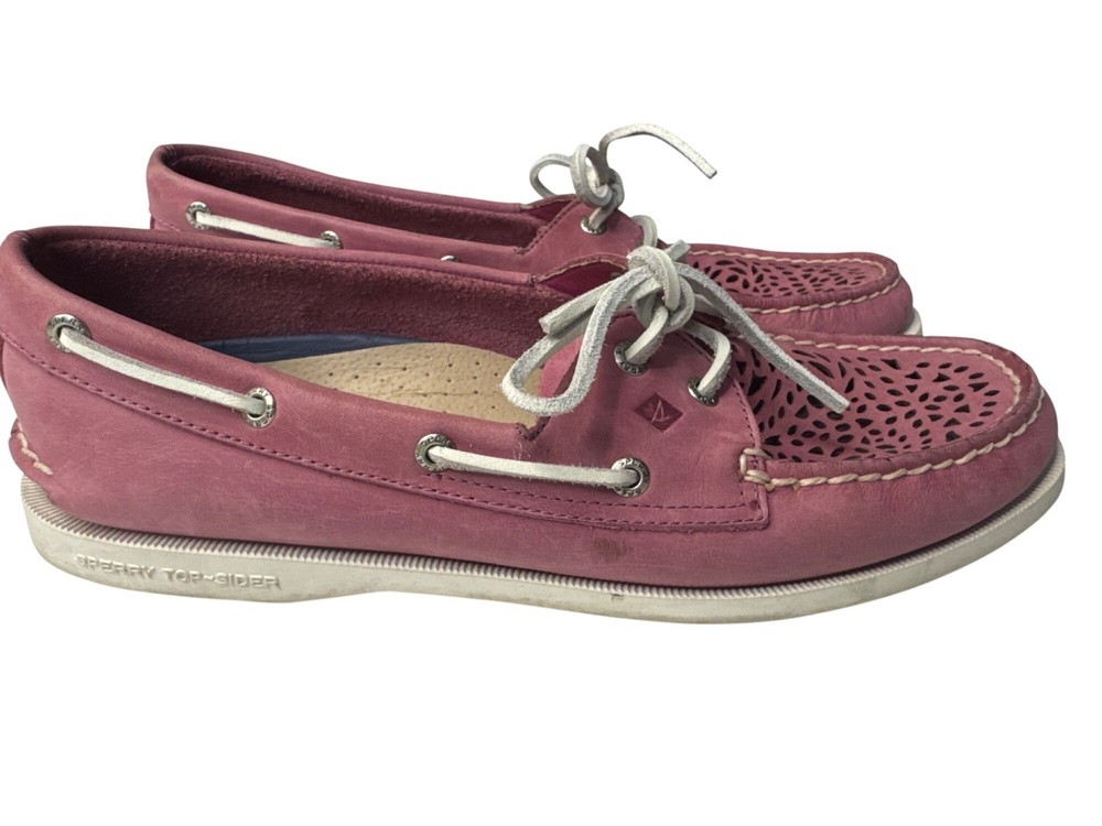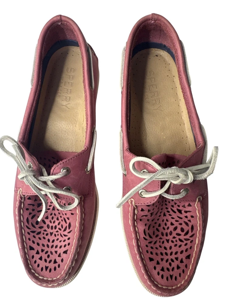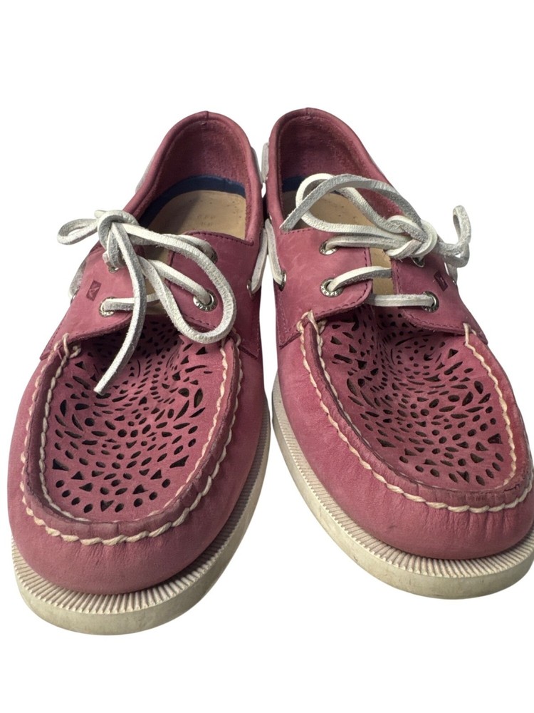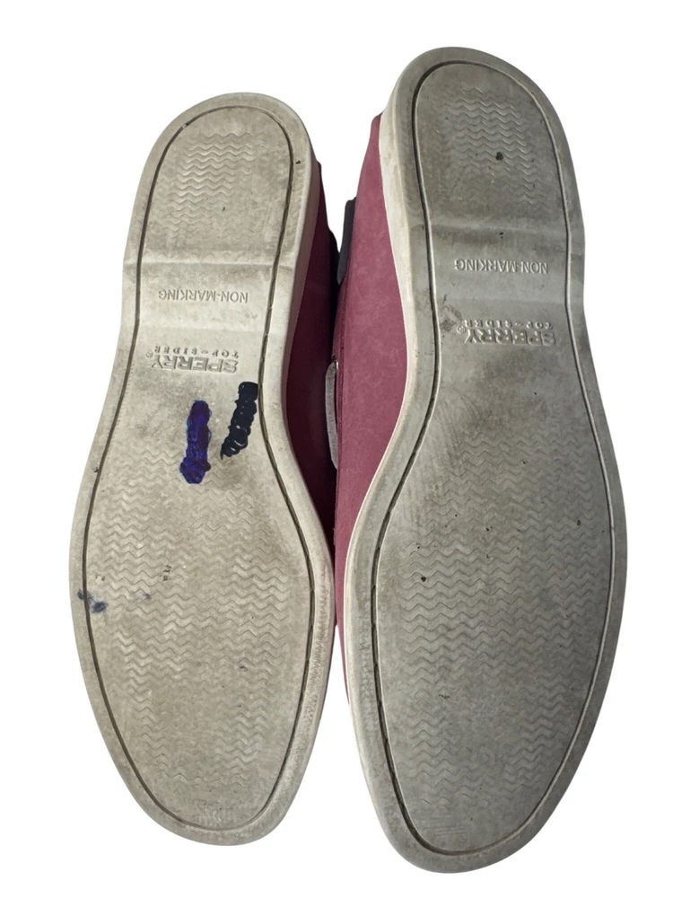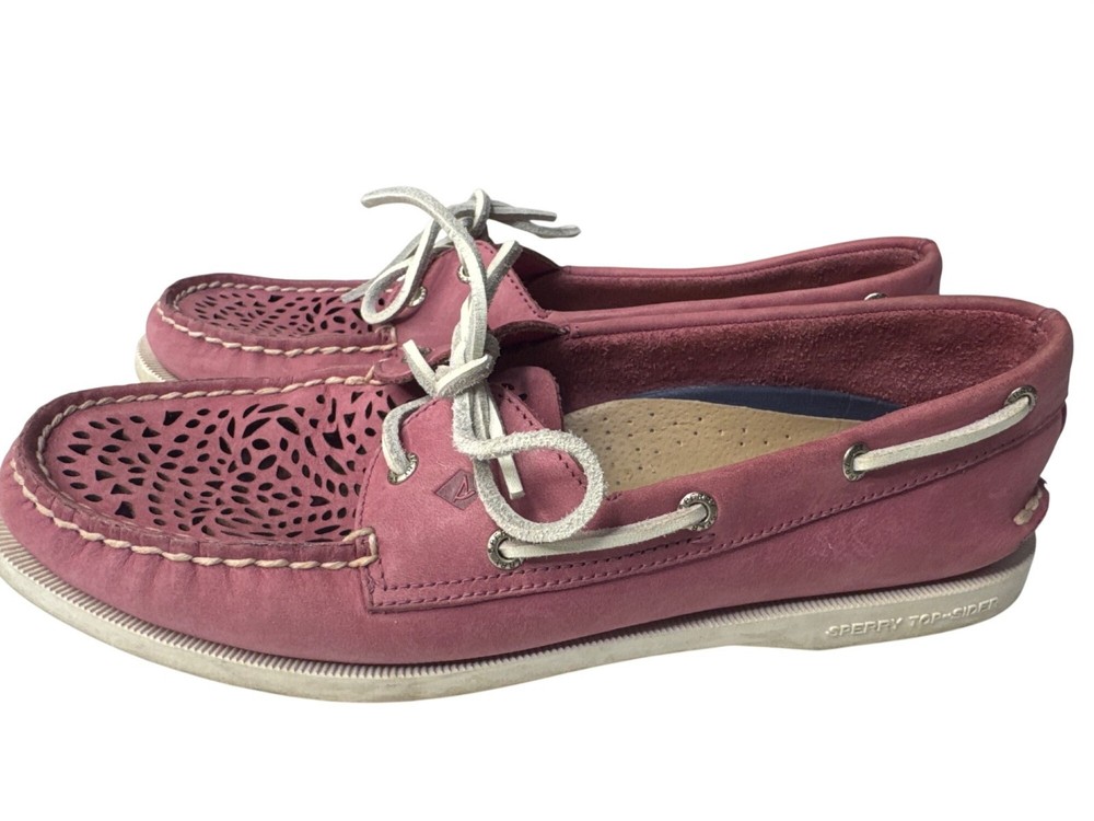 Keep your feet ventilated while sailing—or pretending to. These boat shoes combine style with comfort, making you the captain of casual chic. • Perforated leather upper for breathability • Non-marking rubber soles • 360° lacing system for secure fit • Cushioned insole for added comfort Minor scuff marks on soles and slight wear on leather. Length = 10.75 inches. Features: • nautical • Spring, Summer • perforated • China • Wipe clean with damp cloth Size: Womens 9 Condition: Pre-Owned Good Minor scuff marks on soles and slight wear on leather.
