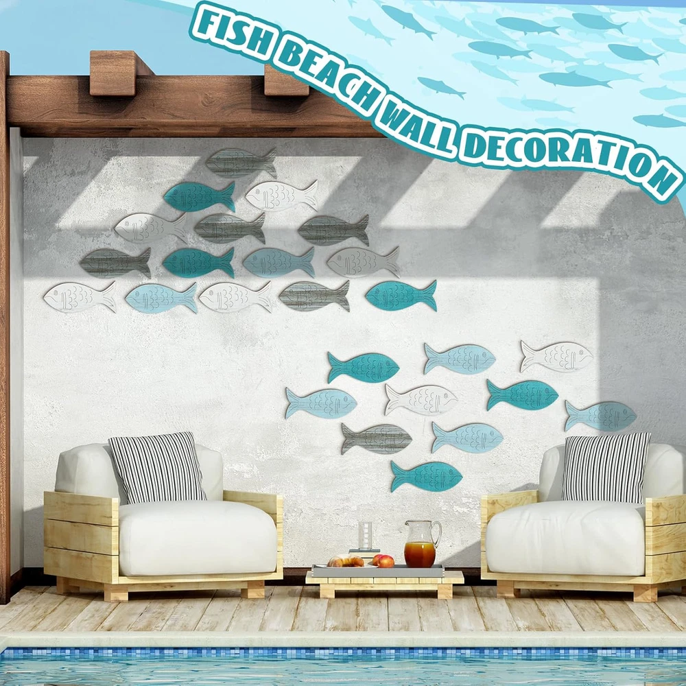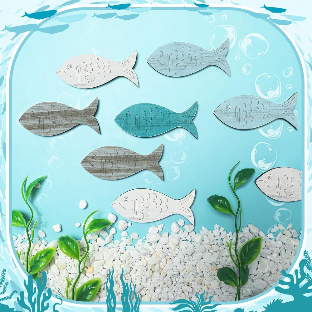 Spiareal 24 Pcs Wooden Fish Wall Decor Nautical Beach Wall Decor, Wooden Fish 4 Package Quantity: the package includes 24 wooden fish wall decor pieces, coming in 4 different colors; With 6 pieces of each color, you have abundant options to decorate your walls tasteful that suits your style; With this fishing wall decor, crafting an exciting nautical atmosphere within your living spaces or events is effortlessly possible Ideal Size for Your Space: properly sized at about 3.54 x 1.5 inches/ 9 x 4 cm, this wooden fish art nicely fits into the area around your home or event venue; Whether you place it in your living room, bedroom, dining room, kitchen, or corridors, the fish wall art adds a distinct decorative accent Quality Material: made of sturdy wood, they are stable, durable, and resistant to bending and rusting; With their smooth surface, they are safe and easy to use; This hanging wood fish decor not only adds beauty to your spaces but also ensures lasting use Visually Appealing Design: add a special and enticing atmosphere to your walls with our fish wall art; The fish patterns captured in 4 fresh colors, including blue, light blue, white, and gray, bring nautical style into your surroundings Versatile Usage: these versatile nautical beach wall decors are not only ideal for home decoration but also suitable for adding some creative atmosphere to your ocean themed events or parties; You can decorate your space with these fishing wall decor pieces, creating an atmosphere reminiscent of the beach environment