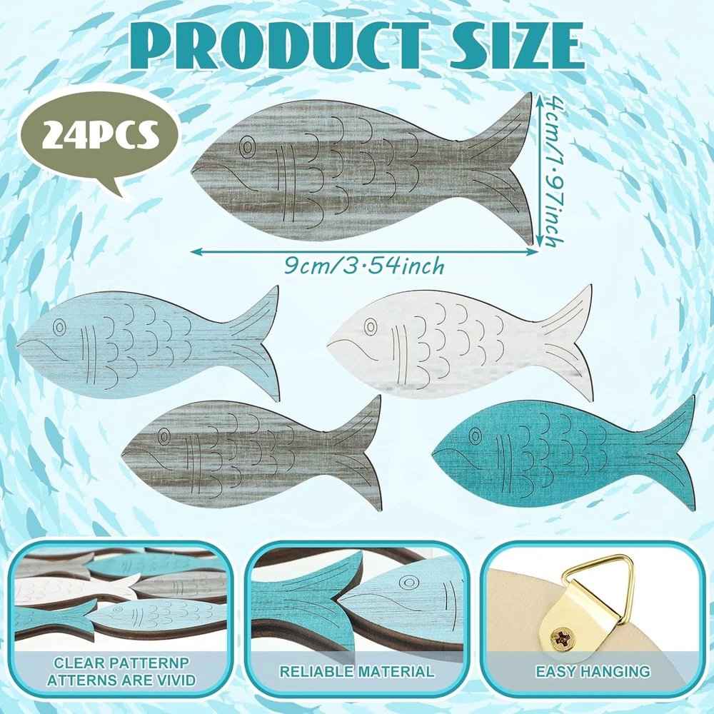 Spiareal 24 Pcs Wooden Fish Wall Decor Nautical Beach Wall Decor, Wooden Fish 4
