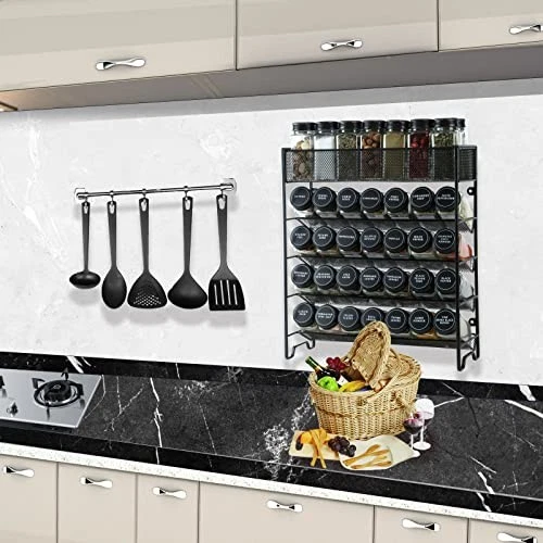 Return Policy Fast Delivery Trusted seller Spice Rack Organizer with 28 Spice Jars, Black Lids,Spice Labels, Chalk Marker and Funnel Set for Cabinet, Countertop, Pantry, Cupboard or Wall Mount Product Description Complete Spice Rack with Jars Set:5-tier spice rack organizer x1 , empty glass spice jars x28, plastic inner lids x28, black metal caps x28, waterproof spice jar labels set x1, silicone funnel x1, chalk marker x1. Spice rack measures 13"L x 4.7"W x 15"H. Each square spice jar measures 1.8"W x 4.1"H, 4 fluid oz capacity. 5 Tier Spice Rack - Made of strong steel and powder coatings electrostatic spray finished.Ideal sized spice rack organizer for cabinet, countertop, pantry, cupboard, door or wall mount. Inclined design make it easy to locate and quickly grab what you need, turn any mess of spice into an organized masterpiece . Premium Thick Glass Jars:Our Spice Jars are made of Lead-Free durable glass with transparent body,so that you can see the contents in the jars directly with what’s inside and how much left. The modern design square seasoning containers fit any spice rack, cabinet, organizer, drawers, or kitchen. Waterproof Spice Labels: Preprinted labels to help name ingredients on similar jars. The labels contain almost all the spices and food contents even leave some blank labels and a chalk pen for you to write exclusive spices. Risk-free Purchase - If you have any issue with our products, please don't hesitate to contact us, we will try our best to find a satisfactory solution for you within 24 hours. However, we are quite sure that you will be impressed with our well-crafted, durable and practically designed spice rack during your daily use. Shipping Returns Payment Shipping Shipping is FREE to all addresses other than APO/PO boxes in the lower 48 states. All our stock ships from US-based warehouses. Shipped via USPS or UPS (depending on location and package weight) Unless stated otherwise, all orders will ship within 24-72 hours of your payment being processed. Check our feedback to see the great reviews of FAST shipping we offer. Returns Seller does not accept returns Payment We currently accept payment via eBay managed payments only. Once payment is cleared, we will dispatch your shipment within 1-3 business days. Please refer to the "Shipping" tab for more information regarding shipping speed to your destination.