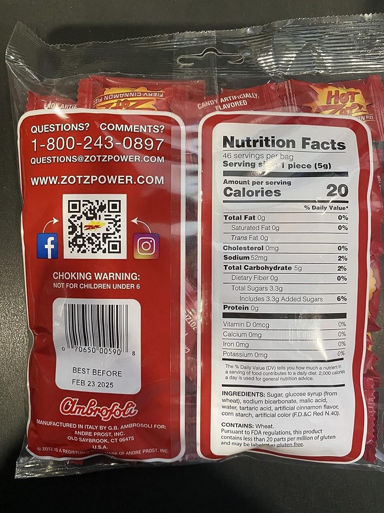 Fiery Cinnamon Fizzy Hard Candy - Sweet & Sour Assortment, 46 Treats for Sharing ‹ › ‹ › ‹ › Fiery Cinnamon Fizzy Hard Candy - Sweet & Sour Assortment - 46 Treats for Sharing Classic Fizzy Retro Candy Since 1970 Indulge in the Fizzy Candy, a nostalgic favorite for over five decades. Each piece delivers a burst of flavor with a unique fizzy surprise in the center, ensuring a delightful experience for your taste buds. Sweet & Sour Nostalgia Candy Perfect balance of a sweet hard candy shell and a tangy, fizzy center. Brings back childhood memories with every bite, making it a timeless treat. Assorted Fruit Flavors for Every Taste Featuring delicious fruity flavors like cherry, watermelon, strawberry, blue raspberry, apple, orange, and grape. A must-have for retro candy lovers craving a fruity explosion on their palate. Individually Wrapped for Convenience Each piece is individually wrapped to ensure freshness and easy sharing — perfect for parties, goodie bags, or simply satisfying your nostalgia candy cravings anytime. A Fun Treat for All Occasions Whether for Halloween giveaways, party favors, or just reliving your childhood memories, is the ultimate retro candy that delivers fun and fizz for kids and adults alike. Experience the Flavorful Journey Take a trip down memory lane with Fizzy Candy, made with the classic recipe that has delighted generations. Every bite offers a unique and unforgettable treat, ensuring that whether you're a longtime fan or discovering this vintage favorite for the first time, will bring back the excitement of old-school sweets. Don't miss out on these delightful treats—grab your Fiery Cinnamon Fizzy Hard Candy today and indulge in the sweet nostalgia! Shipping Free & Fast Shipping - We offer free shipping to most of the USA with a normal delivery time of 3-7 days. However, due to the current situation, additional delivery time (up to 3 weeks) may be required for some items. Alternative Carriers - We may use alternative carriers (e.g. USPS, FedEx, UPS, etc.) to ensure your package arrives safely and on time. Due to the use of multiple carriers, we are unable to provide a tracking number automatically. Handling Time - Orders are processed and shipped within 1-2 business days of receiving cleared payment. Shipping Restrictions - Shipping to Alaska, Hawaii, Puerto Rico, Guam, and other US territories may incur shipping charges or delivery restrictions. Please contact us before ordering, or your order can be refunded/cancelled. State Restrictions - There may be restrictions based on your state of purchase. For example, certain items may not be shipped to California due to state regulations. Contact for Tracking Updates - If you require tracking updates or have any concerns about the delivery of your order, please feel free to contact us, and we will be happy to assist you. Return 30-Day Hassle-Free Returns - We want you to be completely satisfied with your purchase. If you are not, you can return the item within 30 days of receiving it for a full refund or exchange. Easy Return Process - To start a return, simply contact us and we will provide you with a prepaid return shipping label and detailed instructions. Restocking Fee - There are no restocking fees for returns. However, the buyer is responsible for return shipping costs if the return is not due to a seller's error. Refund Processing Time - Refunds will be processed within 5 business days of receiving the returned item in its condition. Payment We accept all major credit cards, PayPal, and Apple Pay for your convenience. Your payment information is secure and encrypted to ensure a safe and seamless transaction. Please complete your payment within 3 days of purchase to avoid any delays in shipping. Feedback Your feedback is extremely important to us. We strive to provide the best products and customer service possible. If you are satisfied with your purchase, please take a moment to leave us a positive review. If you have any concerns or issues with your order, please contact us before leaving negative feedback. We are committed to resolving any problems and ensuring your satisfaction. Contact Us If you have any questions or concerns, please feel free to out to our customer support team. You can contact us through the eBay messaging system. We are available Monday to Friday, 9:00 am to 5:00 pm EST, and we will do our best to respond to your inquiry within 24 hours. Buy it now and enjoy a pleasant shopping experience! Expiration Date: Hard Candy Calories per 100 g/mL: Hard Candy Course: Candy Number in Pack: 46 Units Style: Fizzy Hard Candy Unit Quantity: 1 Flavor: Apple,Cherry,Cinnamon,Grape,Watermelon,Strawberry,Blue Raspberry,Orange Food Specifications: Gluten Free Product: Boiled & Hard Sweet Shape: Mix Type: Hard Candy Packaging: Bag Occasion: Party Item Weight: 8.1 ounces Food Aisle: Pantry Unit Type: oz