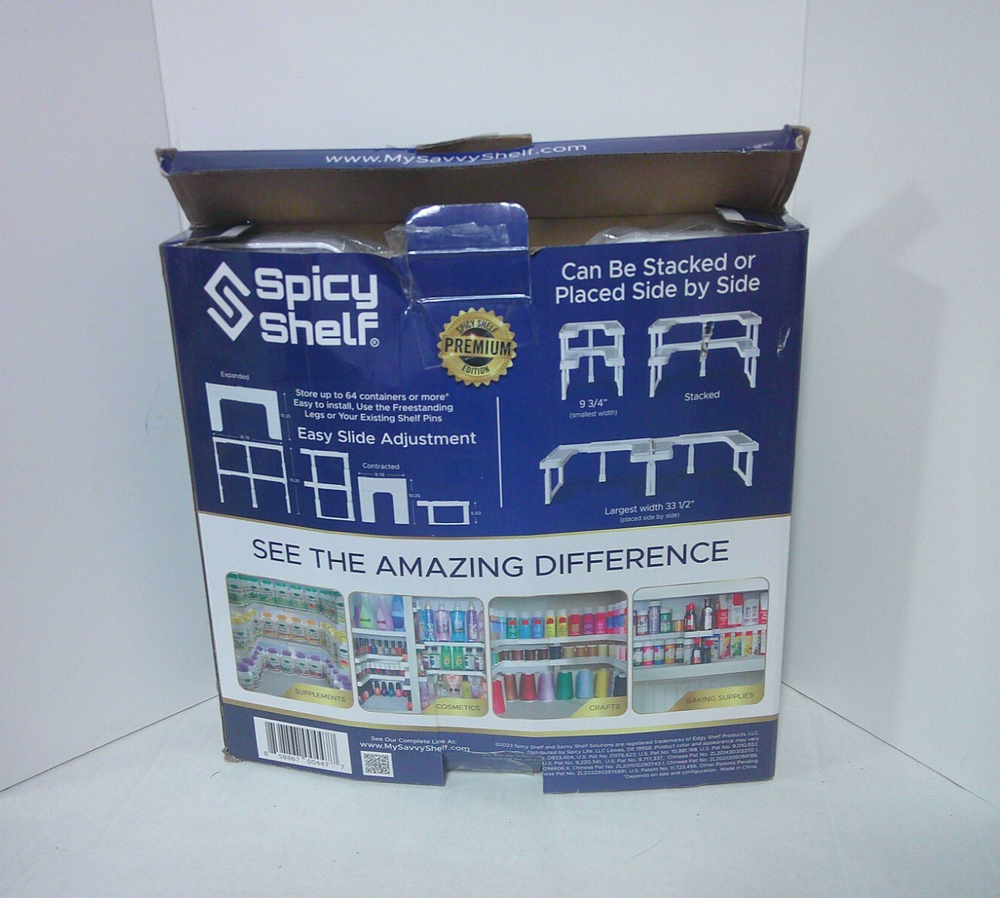 Spicy Shelf Cabinet Storage Organization 2 Shelves Hold 64 Containers New open box. Comes instruction manual. Can be stacked or placed side by side. Adjustable up and down or side to side. Being sold as is. ****************************** PLEASE READ : I buy mostly estates, close outs, shelf pulls, and auction items. As the history of the item is not always known. I will describe all of my items listed to the best of my ability, if there are any flaws to the item it will be noted in the listing and photos of the flaw shown. At times I may miss a flaw, as I am only human. Please contact me and I will make it right and make sure that you are happy with you interaction and purchase from Big Man Tim's Treasures. Please see all photos and ask any qu estions BEFORE purchasing. FREE SHIPPING! Love this item? Check out the other items in my Ebay store! Please check back on a regular basis, as we list new items daily!! 042225EP warehouse