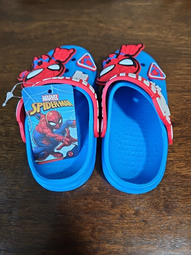 New spider man clogs. The marvel emblems have some defect as shown in picture.