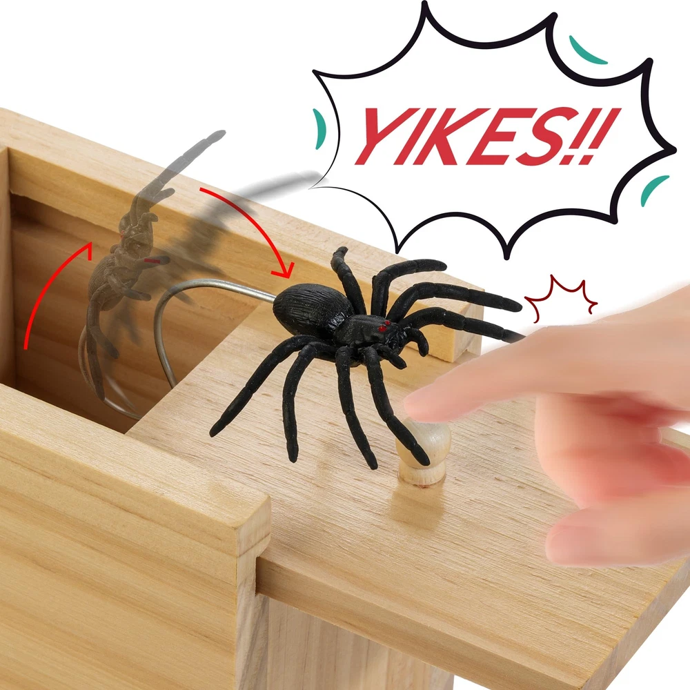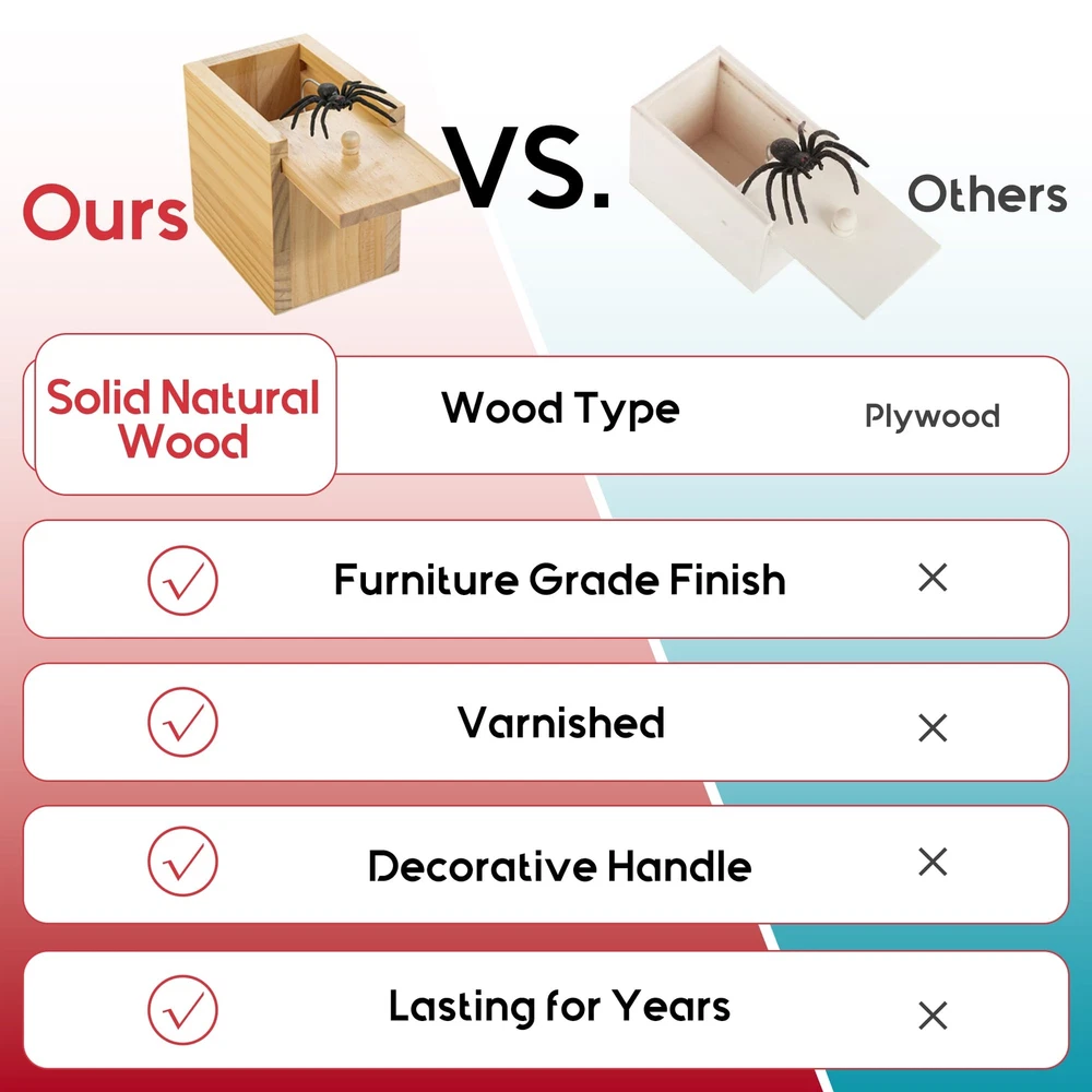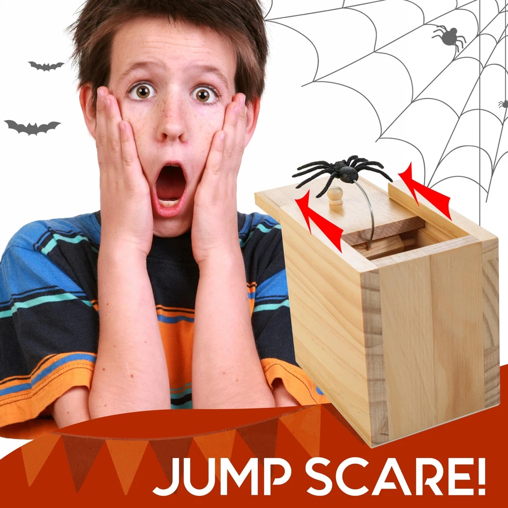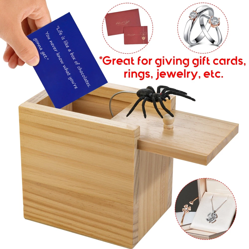【BEST PRANK EVER!】This spider prank box includes a vivid rubber spider that will give anyone a good jump scare as opening the box. Definitely a perfect hilarious prank toy for Halloween, Fool’s Day, etc. 【BIG SURPRISE】Featured with a compact size, the trick box looks like a coin or candy box, which could deceive your victims more easily. When they try to open it, the box will pop out a creepy wiggly lifelike spider. Big scare! 【HAVE A BLAST】Trick your friends, relatives, or colleagues with this spooky spider gag, capture the fun moments and leave a treasured memory. Except the elderly and people with heart or cardiovascular diseases. 【HIGH QUALITY】The practical joke toy is made of solid wood, steel wire, and soft rubber. Non-toxic material and sturdy structure, the improved quality ensures years of pranking fun. 【FUN GIFT】Comes with a gift card where you can write down greetings or blessings, as well as small gifts like money, ring, etc. that can fit perfectly inside the spider trick box. The package is exquisitely made for gifting, this wooden scary surprise box is the best gag gift for kids and adults.