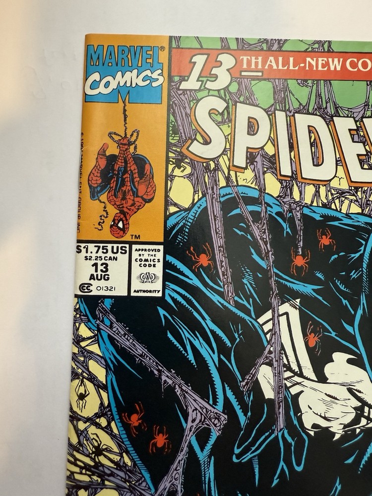 Spider-man #13 (Newsstand) Key info: classic Todd McFarlane cover art Grade: 9.4 NM Notes: Newsstand, light color lift to back cover, and finger print Socials: ItsAliveComicsNYC