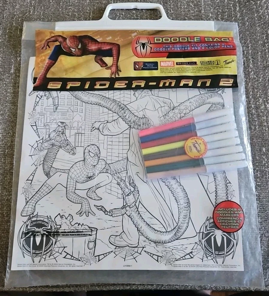 Spider-Man 2 (2004) Doodle Bag Poster Kit Door Bag 6 Posters To Color 8 Markers