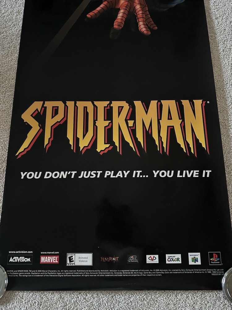 The Spider-Man video game poster from 2000 features the iconic character Spider-Man from the Marvel universe. This poster is perfect for fans of the Spider-Man video game series and Marvel in general. It measures 72x24 inches, making it a great addition to any gaming or comic book enthusiast's collection. The brand associated with this product is Nintendo, adding a touch of nostalgia for those who remember playing the game on the Nintendo 64 console. 10-22-25