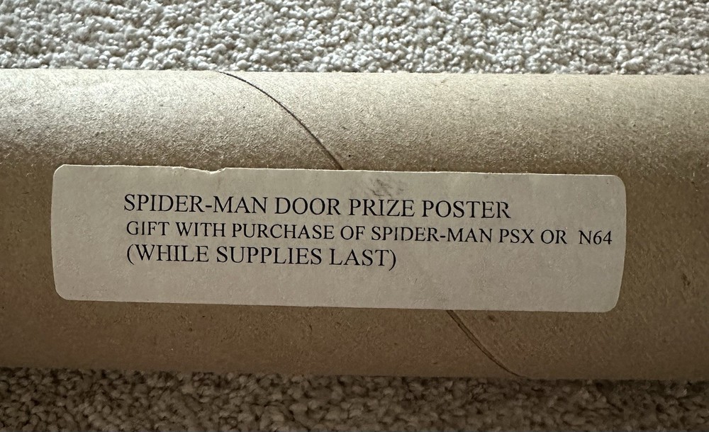 The product is a Spider-Man video game poster featuring the popular Marvel character on the Sony PlayStation and Nintendo 64 consoles from the year 2000. This poster is part of the Marvel product line and showcases Spider-Man as the main character in the Spider-Man video game series. Perfect for fans of the superhero genre, this vintage poster would be a great addition to any gaming or comic book collection. 10-22-25